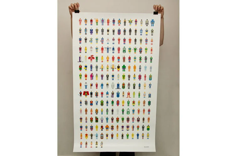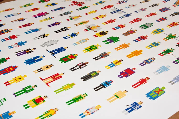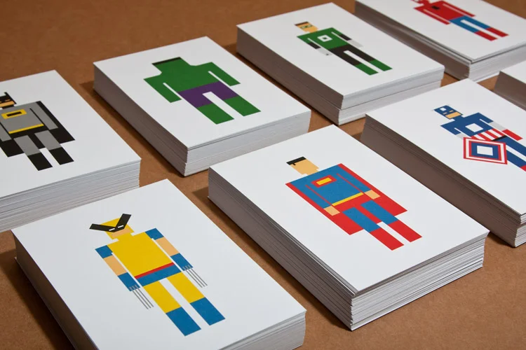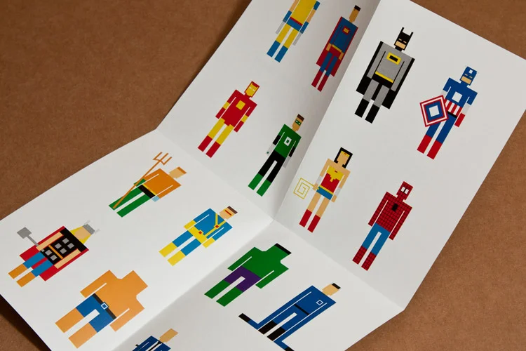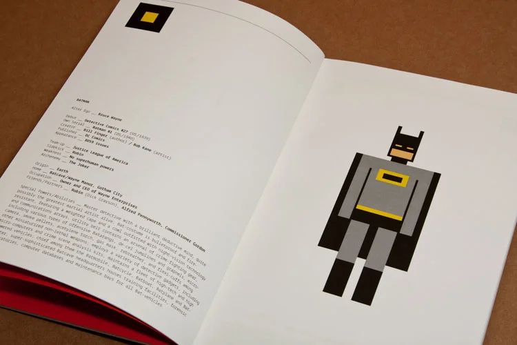 Mit möglichst wenigen Rechtecken werden 201 populäre sowie auch weniger bekannte Superhelden (und Schurken) illustriert und damit neu interpretiert. Dabei stehen nicht Mimik, Gestik und Stimmung im Vordergrund, sondern nur die minimalistische Darstellung, reduziert auf die wesentlichen Formen und Farben, die zur Identifizierung des jeweiligen Charakters dienen.