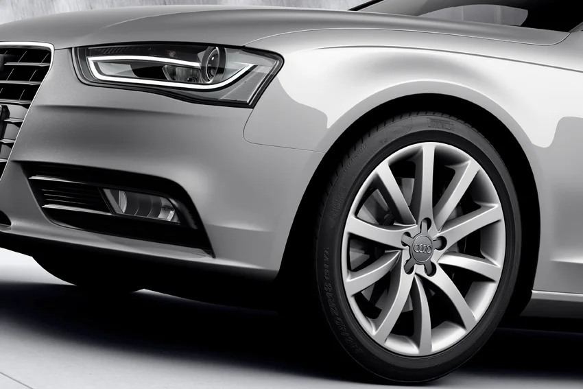 A4 3.0 TFSI hat 18 Zoll-Räder mit Reifen der Dimension 245/40. Das Programm an Optionen reicht bis zum Format 19 Zoll mit Reifen der Serie 255/35. Beim A4 allroad quattro stehen vier eigenständige Designs zur Verfügung.