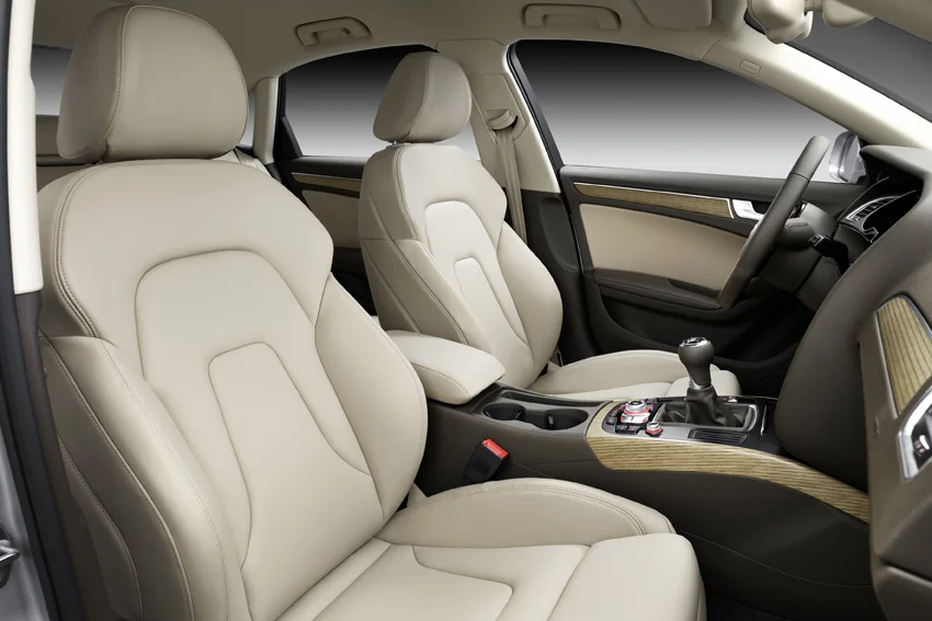 Der Innenraum der A4-Modelle wirkt noch feiner als bisher. Audi offeriert eine breite Auswahl neu gezeichneter Lenkräder, das Sportlederlenkrad auch mit unten abgeflachtem Kranz. Viele Bedienelemente tragen schmale Chrom- spangen, die Lenkstockhebel und der Zündschlüssel sind überarbeitet.
