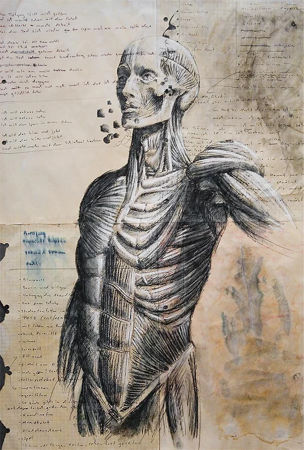 Der Mensch als biologisches Wesen äußert sich in den anatomischen Zeichnungen. Hier wird der Mensch nicht als gesellschaftliches, emotionales Wesen gezeigt, sondern als ein biologisches, architektonisches Werk aufgefasst.