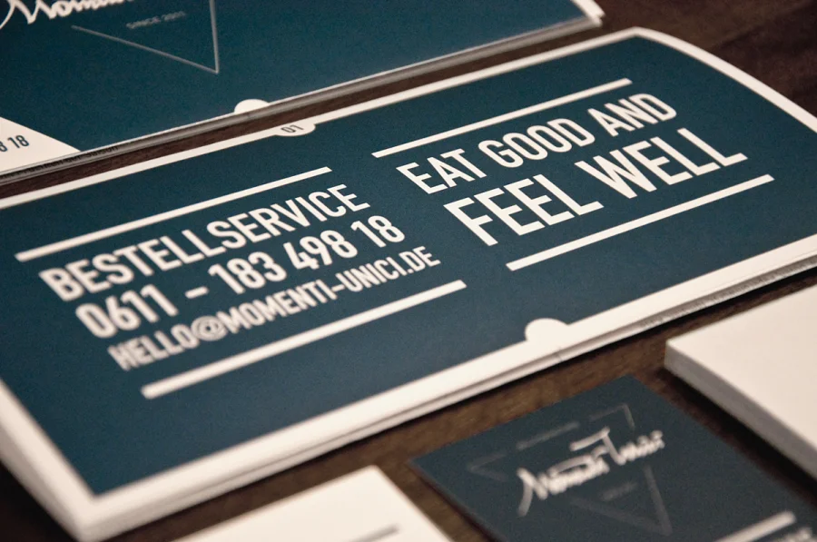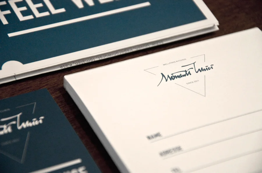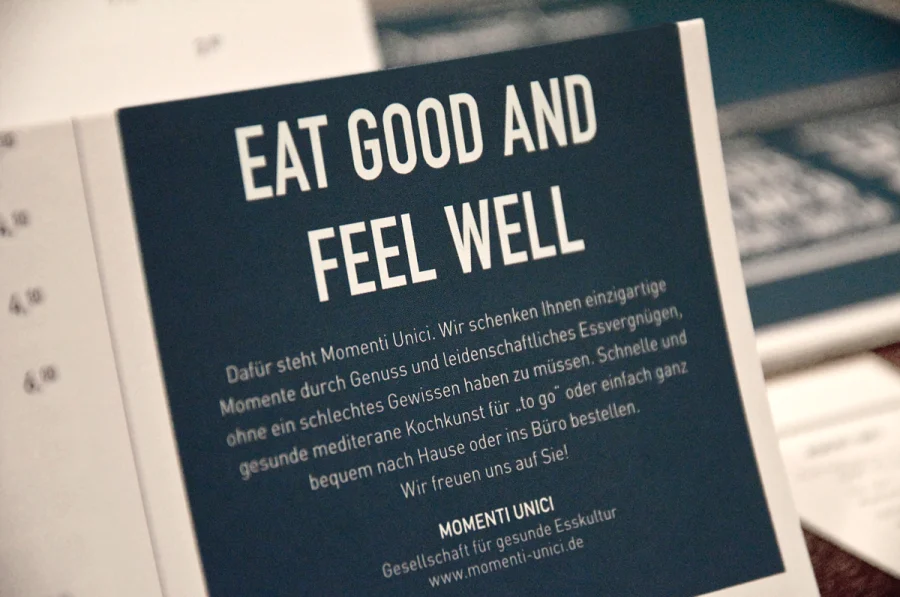 EAT GOOD AND FEEL WELL Dafür steht Momenti Unici. Wir durften für die wahrscheinlich erste Wellfood-Kitchen in Deutschland neben der Konzeptionierung auch die ganze Corporate Communication realisieren.
