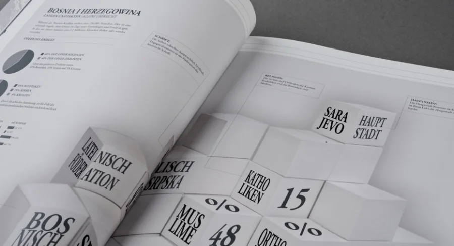 Auf den Bürgerkrieg in Bosnien und Herzegowina folgten Jahre des Wiederaufbaus und die Rückkehr der Flüchtlinge in ihre Häuser. Seit 16 Jahren schweigen in Bosnien und Herzegowina die Waffen. Spuren des Krieges sind aber heute noch sichtbar. Kriege erzeugen Verluste, sie haben langfristig soziale, psychologische und ökonomische Auswirkungen. Wie sieht das Leben der Bürger nach dem Krieg aus, wie hat sich ihr Leben verändert, ihre sozialen Kontakte zwischen Bosniaken, Serben und Kroaten. Ich habe diesbezüglich ein Bookazin gestaltet, das die geschichtlichen, politischen und sozialen Begebenheiten widerspiegelt. (Masterarbeit WS 2011/12)