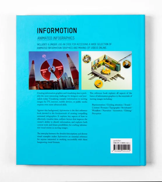 Informotion ist das erste Buch, das die Grundlagen für die Erstellung wirkungsvoll animierter Infografiken versammelt und anhand von Beispielen erklärt. Aspekte von Datenvisualisierung, Infografik und Möglichkeiten im Bewegtbild werden ebenso thematisiert wie Faktoren, die die Informationsaufnahme aufseiten des Betrachters begünstigen.