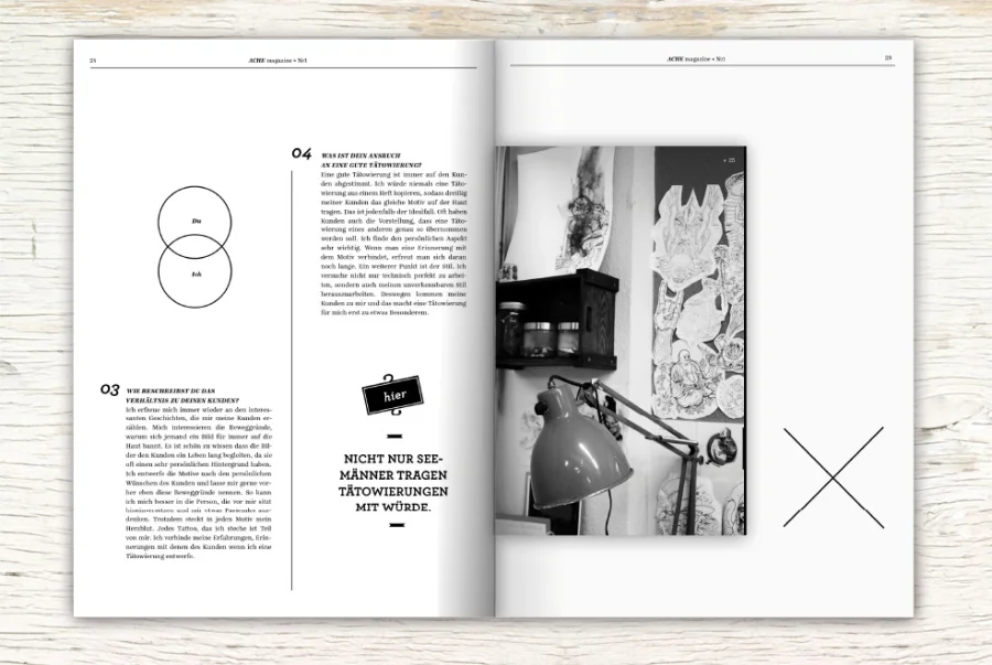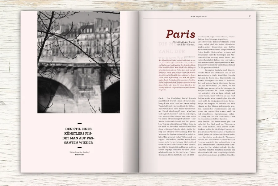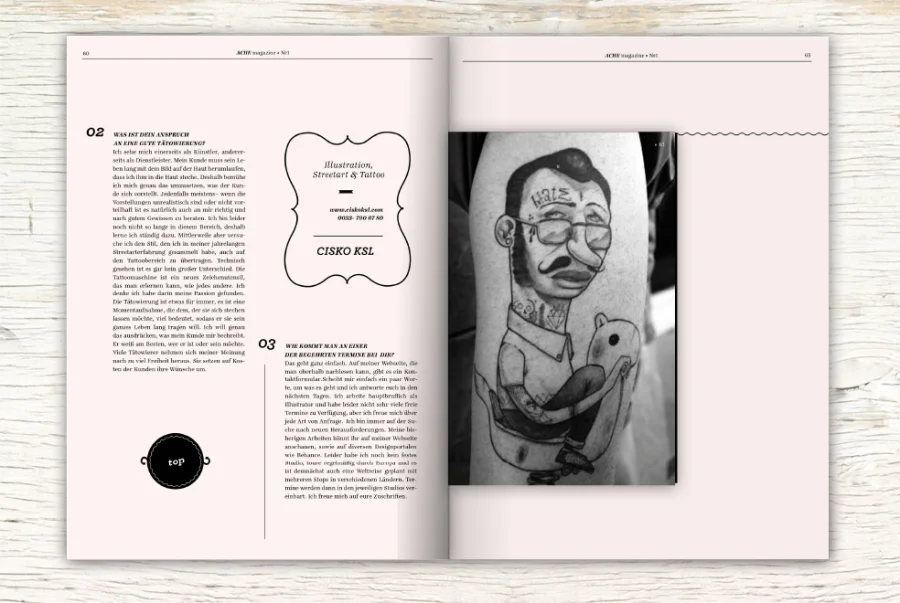 Die Szene schlägt seit einigen Jahren eine andere Richtung ein. Statt düstere Geschäftsläden sind es in den Hauptstädten dieser Welt heutzutage Kunstgalerien, wo es keinen Unterschied macht, worauf Kunst entsteht. Alles ist möglich und der Vielfalt sollen keine Grenzen gesetzt werden. Neue Ideen, Ansätze sind erwünscht, um eine neue Entwicklung anzutreiben. Doch eine angemessene Dokumentation dieses Wandels bleibt bis jetzt aus. Vereinzelt findet man Bücher oder einige Artikel, die sich mit diesem Thema befassen, doch die gängigen Tattoomagazine folgen immer noch dem selben Trend und gewähren nur wenig Einblick in die neuen Welten der Tätowierung.