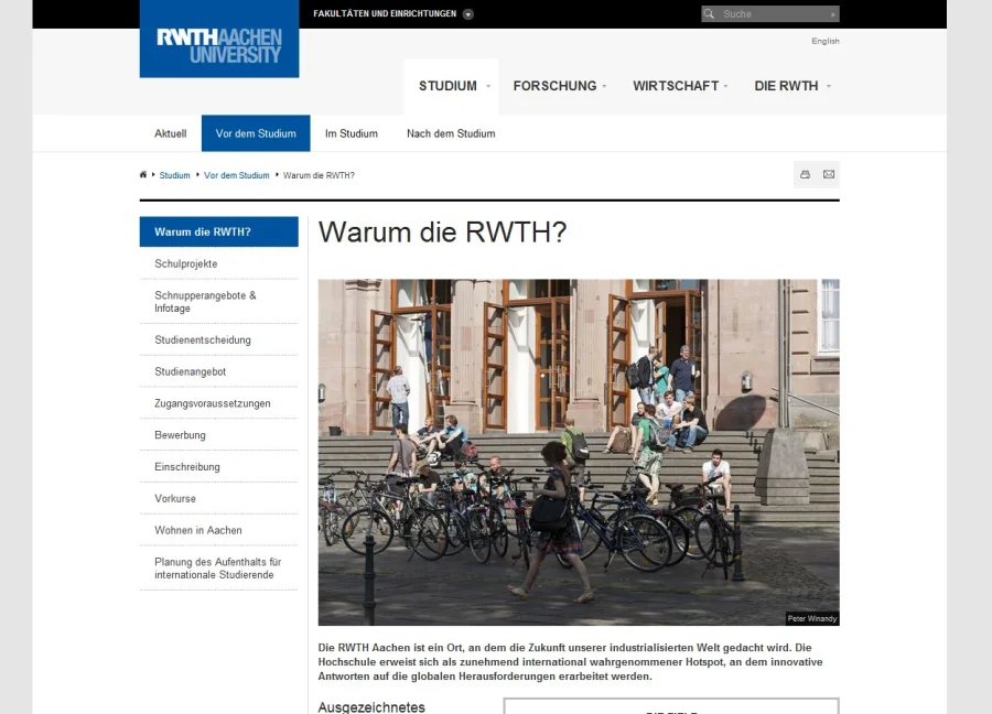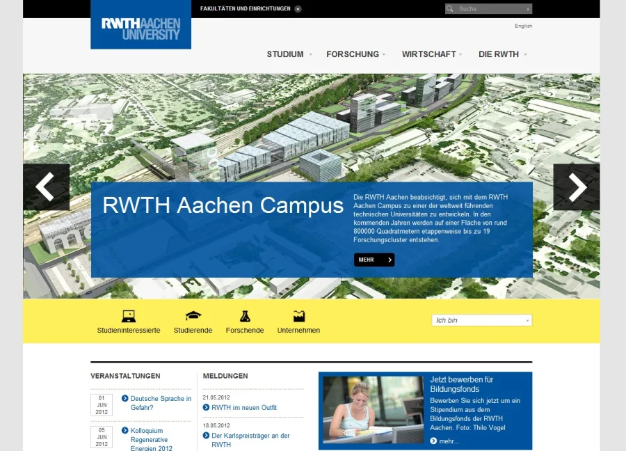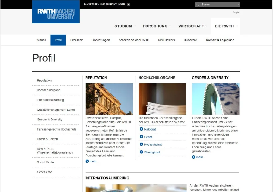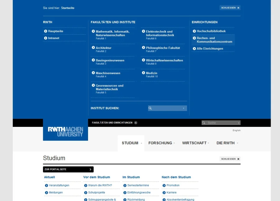 Ziel des Projektes war ein kompletter konzeptioneller und gestalterischer Relaunch der Weblandschaft der RWTH Aachen. Aperto hat der RWTH zudem den konsequenten Wechsel von einer binnenstrukturierten zu einer nutzerorientierten Aufbereitung der Inhalte empfohlen. Entsprechend orientiert sich die neue Navigationsstruktur nicht mehr am Aufbau der Hochschulverwaltung sondern an den Informationsbedürfnissen der Nutzer.