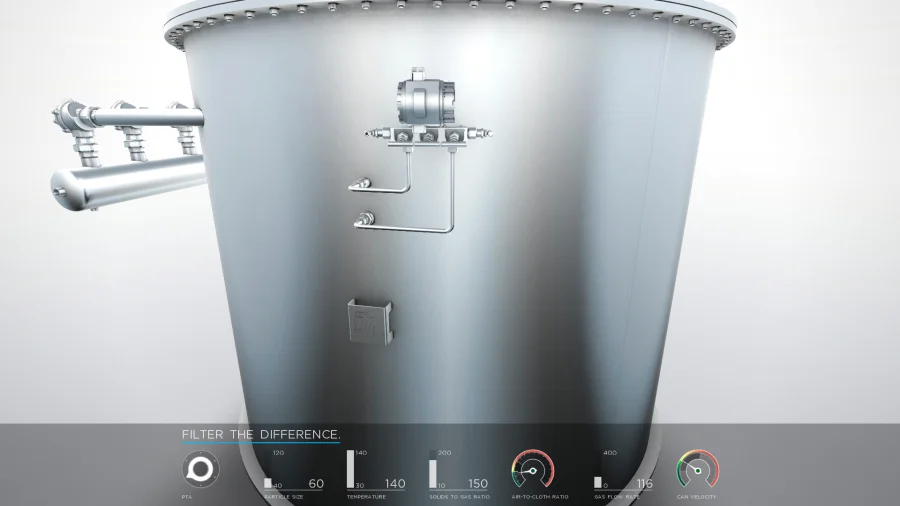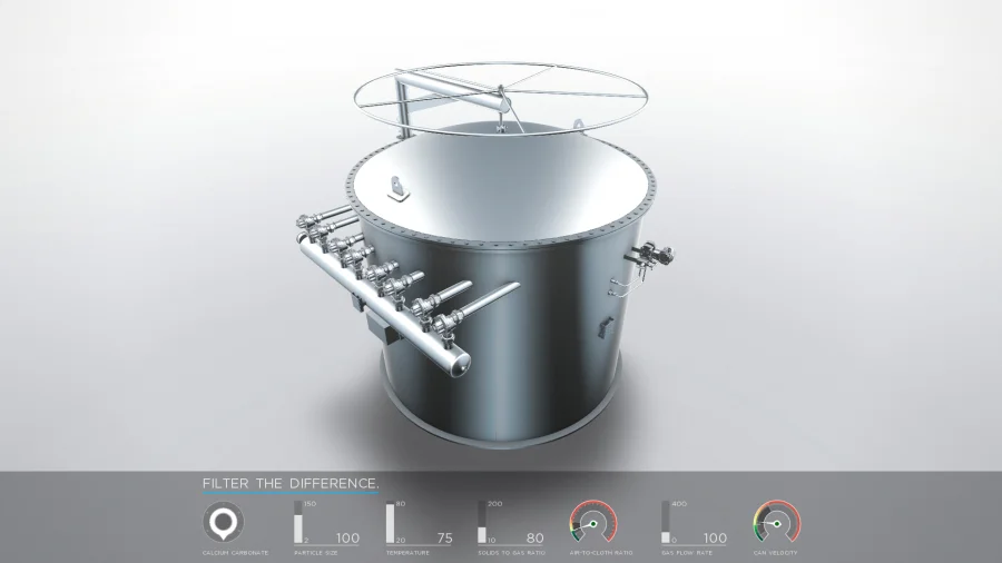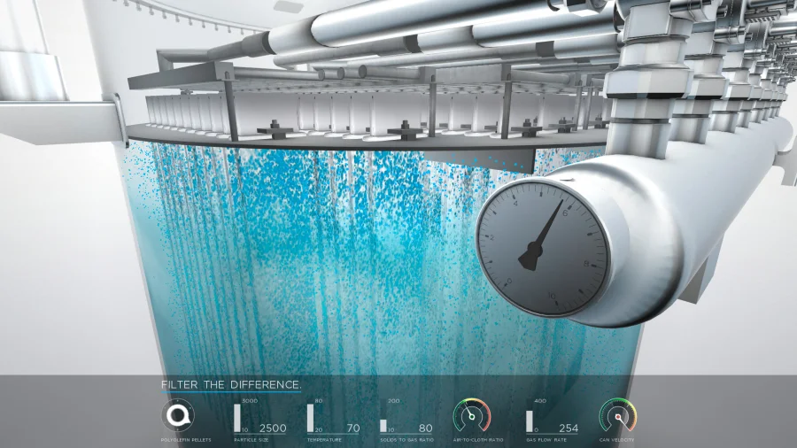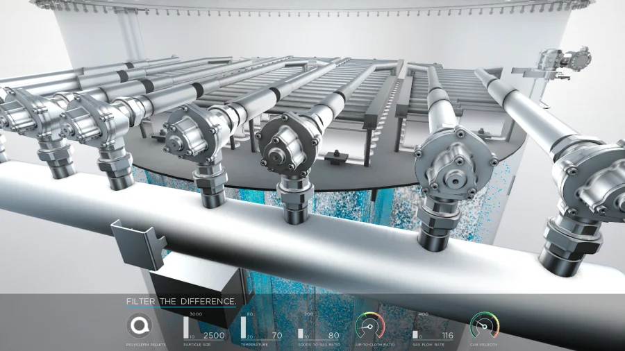 Eine interaktive Simulation zur Visualisierung von Filtrationsverfahren in Silo-Filtern. Die Software wurde für die Firma Coperion erstellt, um ihren Ansatz bei der Herstellung von Filtern aufzuzeigen, welcher sehr kundenorientiert und auf individuelle Anpassbarkeit abzielt.