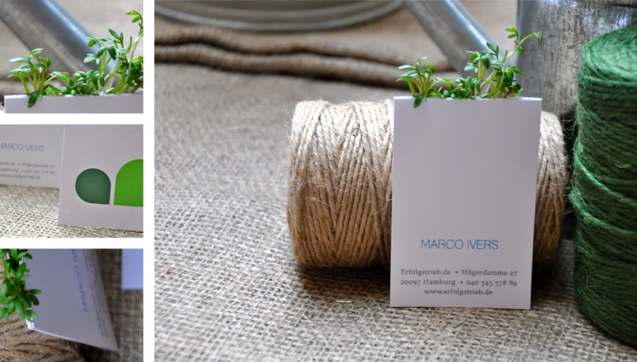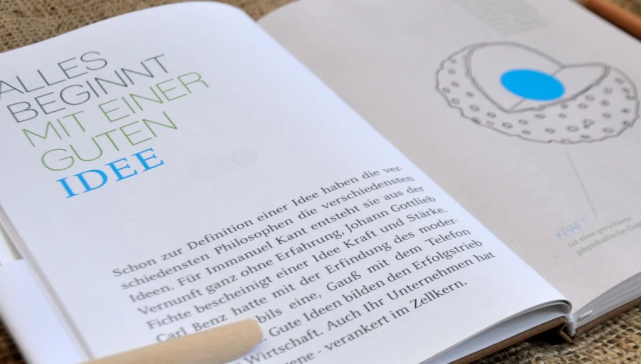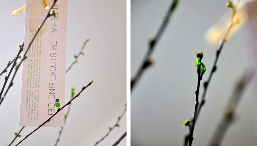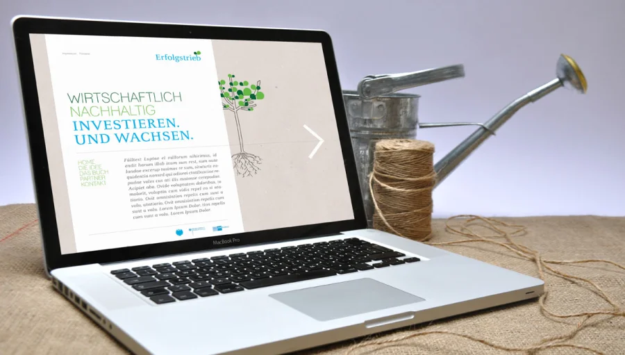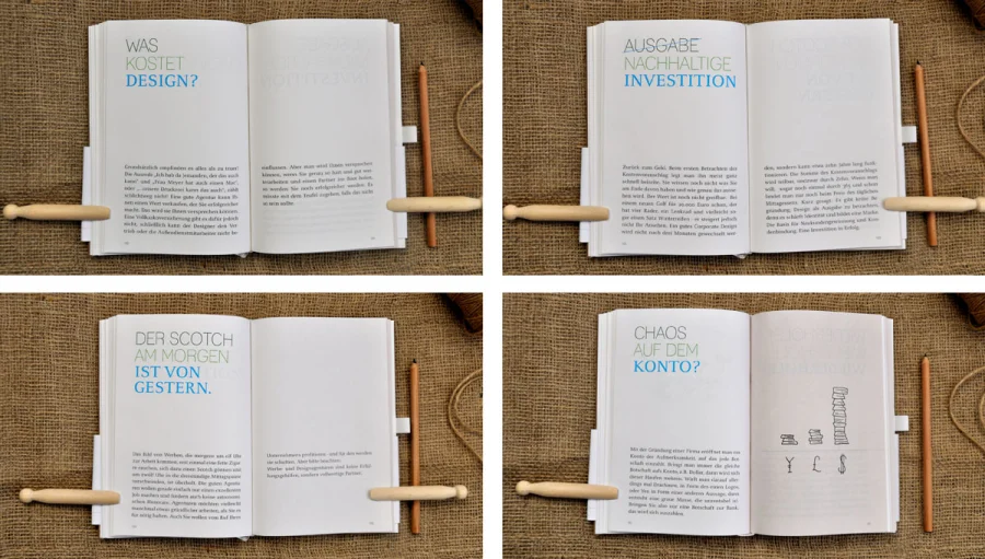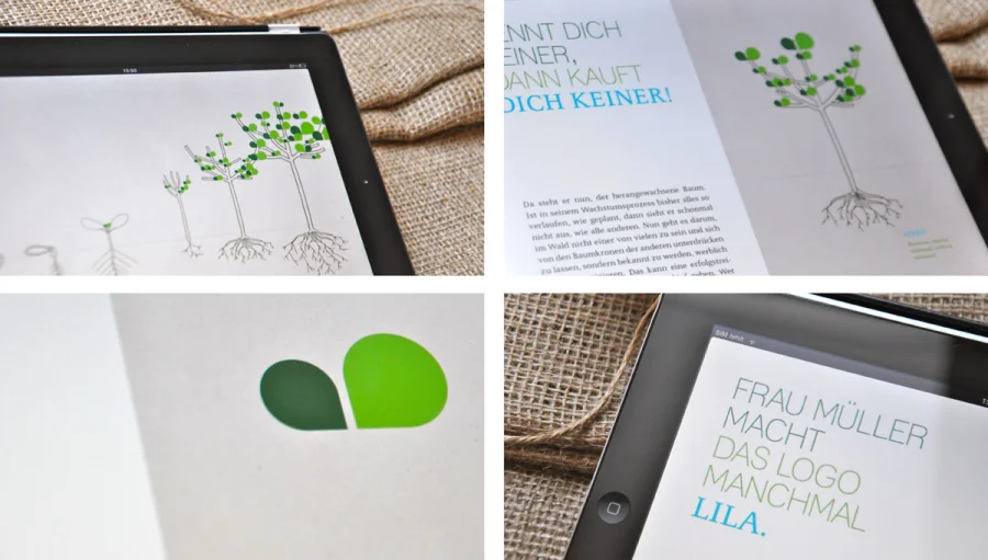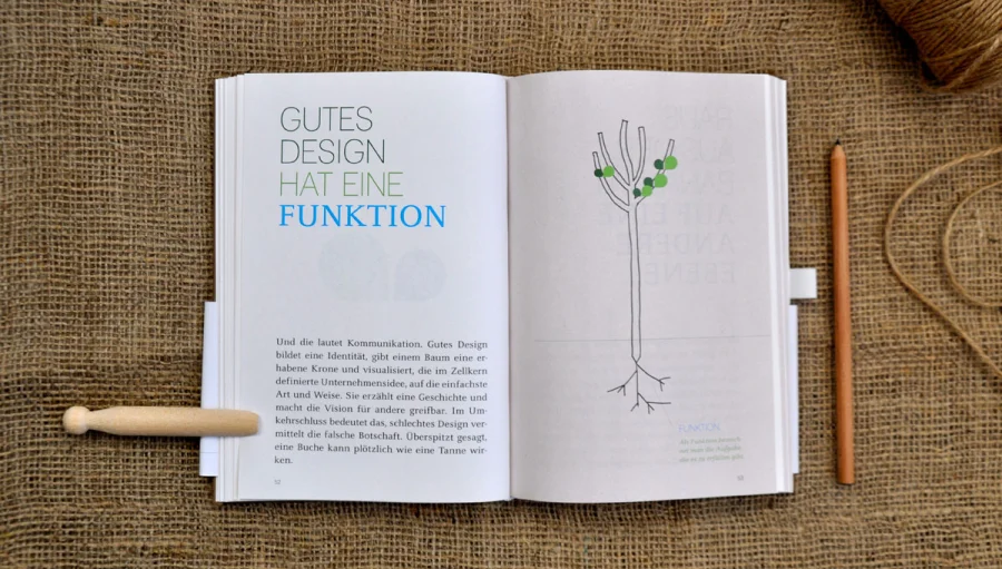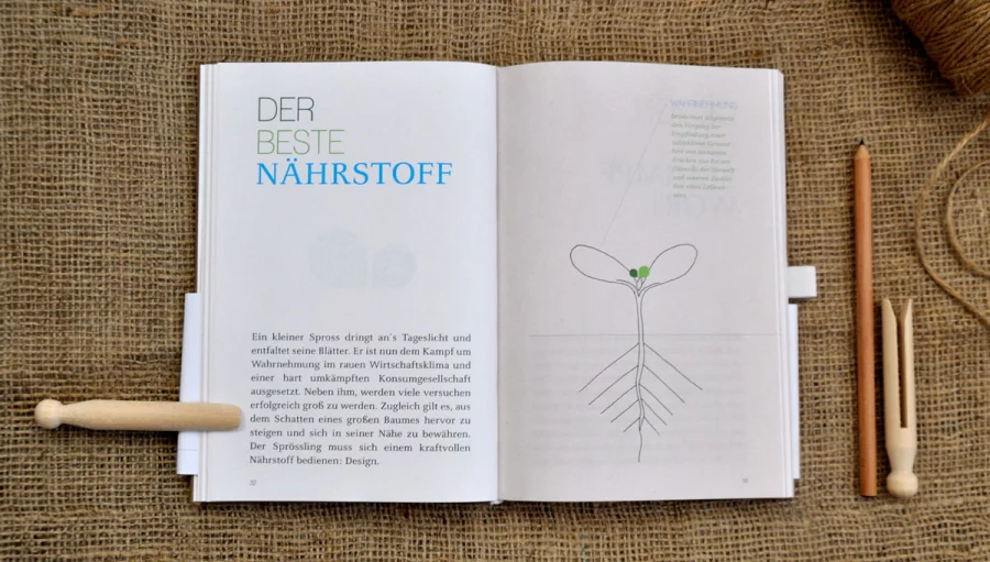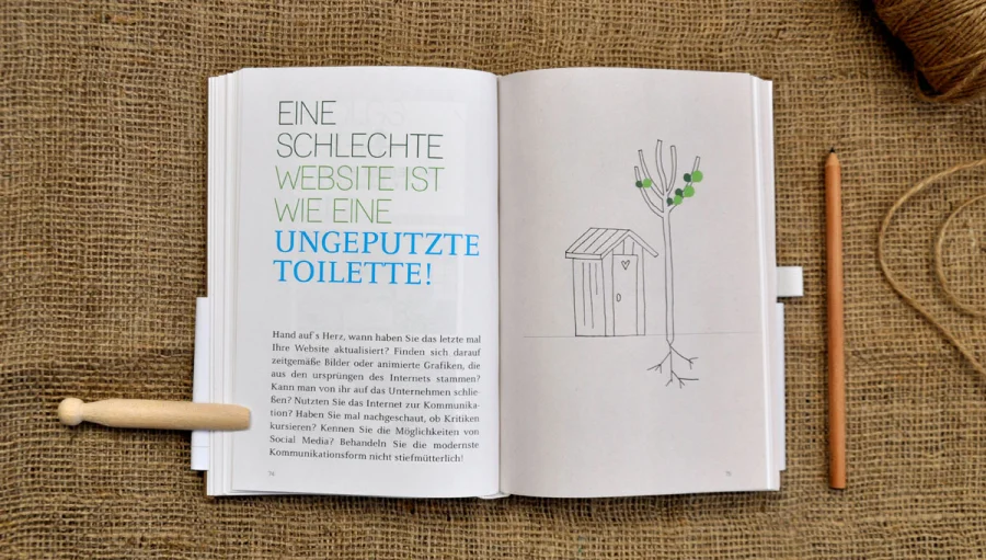 Als Verleger haben wir die fiktive Mittelstandsinitiative „Erfolgstrieb“ geschaffen, die sich wirtschaftlich nachhaltiges Wachstum zum Ziel gesetzt hat. Dieser Gedanke zieht sich durch die gesamte Kommunikation der Initiative. In der Kampagne sprechen wir von „Noch mehr Früchten für gute Arbeit“ und einer „Ertragstarken Ernte für Unternehmen“. Aus Visitenkarten wächst nach ein paar Tagen Kresse, in Guerilla Aktionen stehen über Nacht Bäume vor Unternehmenstüren. In Mailings verschicken wir Heckenscheren, die zum Formschnitt der Unternehmensdarstellung genutzt werden sollen. Auf einer Messe für nachhaltige Energie kleben überall QR-Code Aufkleber mit Worten wie: „What the fuck is Erdwärme“ und „Schöner investieren“, die wie die Kampagne auf die Website der Initiative verweisen. Dort erhält der interessierte Unternehmer zunächst das Buch sowie das EBook, liest und versteht es „binnen einer Stunde“, kehrt durch einen Link im Buch auf die Website zurück und findet einen „Agenturgenerator“. In diesem werden ihm passende und vor allem gute, kleine Agenturen genannt, die er mit seinem Anliegen kontaktieren kann. Durch das voran gelesene Buch haben beide eine einfachere Zusammenarbeit. Der Unternehmer kennt erste Grundlagen für gutes Design, deren Wert und schätzt die Agentur als Partner. So schaffen wir es, den Mittelstand ein wenig schöner zu machen.