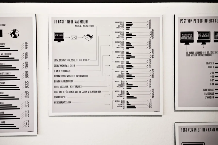 In einer Galerie der Erinnerung finden historische Jugendfotos der Jahre 1945 bis 2010 ihren Platz. Aktuelle Fotos wurden in einem Workshop von Jugendlichen gemacht, die sich und ihr “Jung sein in Hannover” in Bildern festgehalten haben. Statistische Erhebungen liefern eine objektive Sicht mittels Zahlen und Fakten.