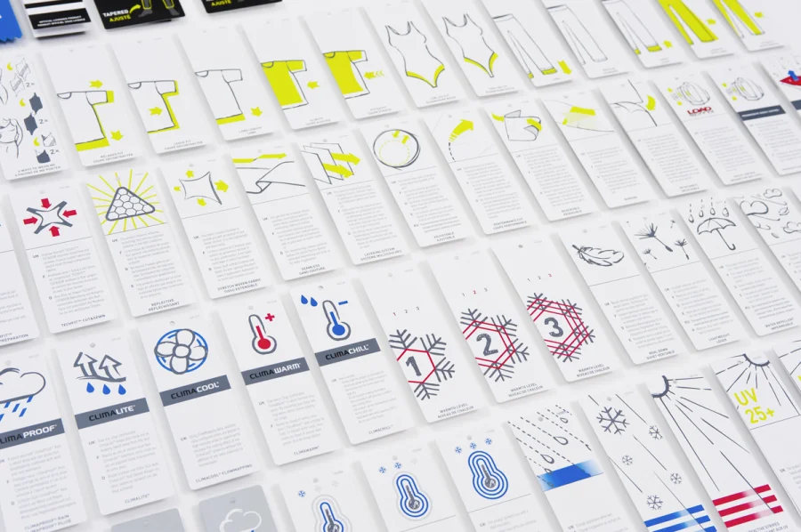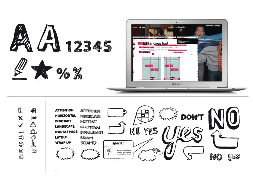 Die adidas brand iconography dient als Stilvorgabe für die Auszeichnung von Benefits und Features an Produkten und auf Verpackungen, als Orientierungssystem in dem adidas Store oder als Piktogrammsprache in digitalen Anwendungen. Da sie weltweit eingesetzt wird, muss sie den Erwartungen einer jungen Zielgruppe in unterschiedlichen Kulturen gerecht werden.