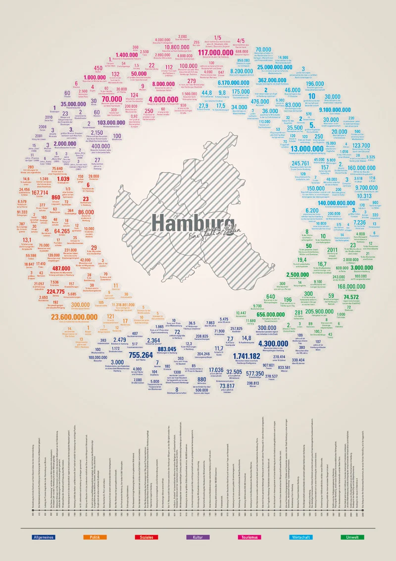 Diese und viele weitere Fakten habe ich in meiner Abschlussarbeit “Hamburg – Eine Stadt in Zahlen” zusammengetragen und grafisch visualisiert.