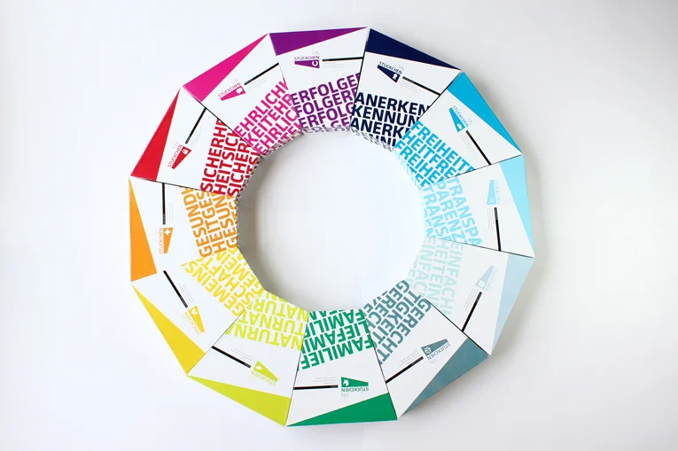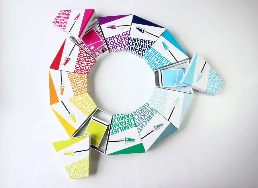 Ziel dabei war es, die 12 Werte visuell umzusetzen und durch ein Produkt greifbar und verständlich zu machen, die das Hamburger Trendbüro im Werte-Index 2012 als aktuell besonders bedeutsam herausstellte. Die Umsetzung und Interpretation dieser Werte erfolgte durch eine Anordnung im Wertekreis nach dem universellen Wertemodell des Psychologen Shalom Schwartz. Der Wertekreis besteht in dieser Interpretation aus 12 Werteboxen, deren Inhalt eine analoge und wertvolle “Beschäftigung” ist, die den jeweiligen Wert näherbringen und verdeutlichen soll.