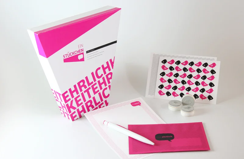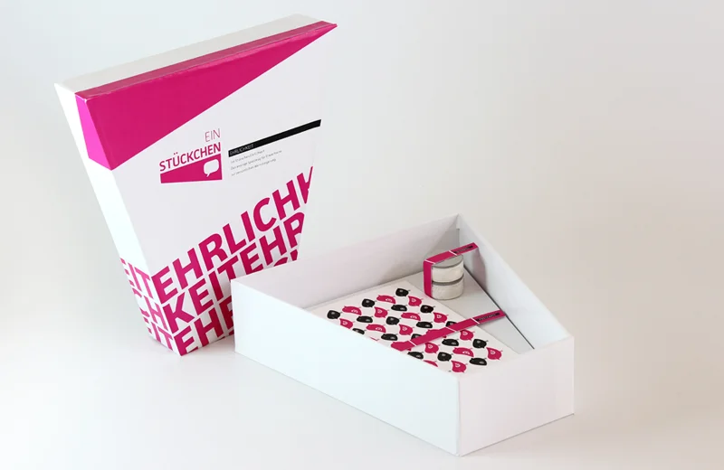 Als Resultat dieser Abschlussarbeit entstand die Produktserie Ein Stückchen, die zum einen durch die gestalterische Umsetzung eine Wertevermittlung zum Ziel hat und zum anderen durch die Bedeutung der einzelnen Produkte zum Reflektieren und Überdenken der persönlichen Wertehaltung anregen soll.