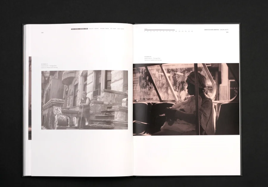 Unterteilt in drei Kapitel, die als orientierendes Element mit einer Zeitleiste sowie einer Emotionsskala versehen sind (jeweils das entsprechende Thema aufgreifend), umfasst das Buch eine Bandbreite von Seitentypen, von plakativ-atmosphärisch bis sachlich-hierarchisiert.