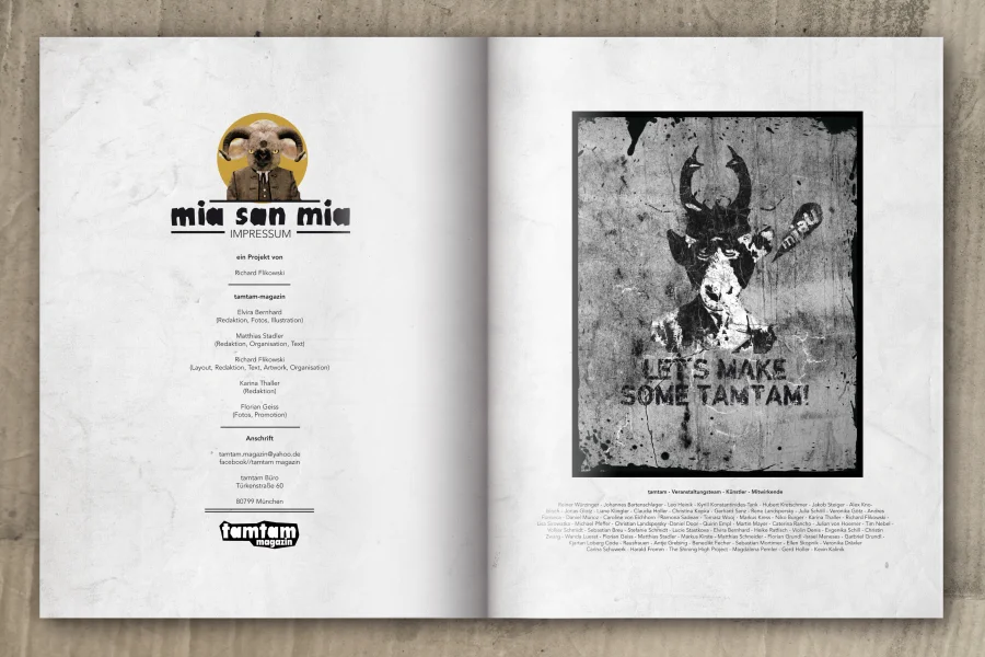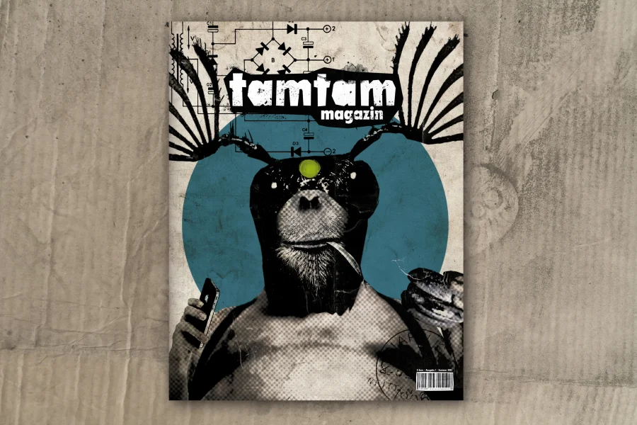 Die Tamtam-Events zeichnen sich durch Experimentierfreude und Improvisationslust aus. Auf Perfektion wird weniger Wert gelegt. Deswegen sollte auch das Magazin keine zu strenge Form bekommen. Ich wollte auf keinen Fall ein cleanes Hochglanz-Magazin schaffen. Da ich meine Prioritäten nicht auf Genauigkeit und eine perfekte Mikrotypografie gelegt habe, bot mir die Arbeit an dem Magazin zudem die wohltuende Möglichkeit mich kreativ auszutoben. Ich versuchte mich spielerisch an neuen Techniken und habe es mir durchaus auch erlaubt, mich am “Kitsch” zu bedienen. Um ein zu genaues Arbeiten zu vermeiden, entstanden alle Seiten des Mags ausschließlich durch analoges Collagieren oder ohne Hilfslinien im Adobe Illustrator.