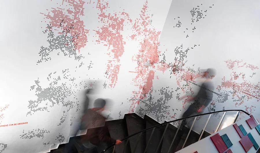Als Ausstellung konzipiert, wurden die zuvor in Geschäftsberichten und Datenbanken recherchierten Informationen in Form großer Ausbreitungskarten an die Wand gebracht. Fünf Fälle ausgewählter Großkonzerne wurden jeweils einem vergleichbaren Fall aus der Natur zugeordnet. Um die drastische Ausbreitung zu verdeutlichen, wurden jeweils drei Wachstumsphasen gewählt: Die Anfangszeit, eine Zwischenphase und der aktuelle Stand der Verbreitung. Die wirtschaftlichen Fälle sind vertikal und in schwarzer Plottfolie dargestellt, wohingegen sich die natürlichen Fälle horizontal und in roter Folie zeigen. Zwischen den Karten findet man immer wieder Zitate und Fakten aus der Recherche, die die Problematik verbalisieren. Zusätzlich kann man die einzelnen Fälle auf Tafeln nachvollziehen und weitere Details abrufen.