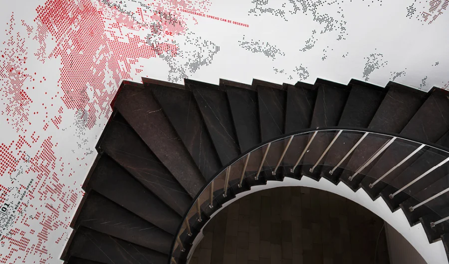 Kompositorisch überzieht die Inszenierung die Wand wie ein Schimmelpilz und unterstützt so formal die inhaltliche Aussage. Die durch Größe, Farbwahl und Art der Inszenierung erreichte Aufmerksamkeit schafft einen intuitiven Zugang zur Arbeit. Durch die Sprachwahl ist es einer breiten Öffentlichkeit möglich dieses globale Thema zu rezipieren.