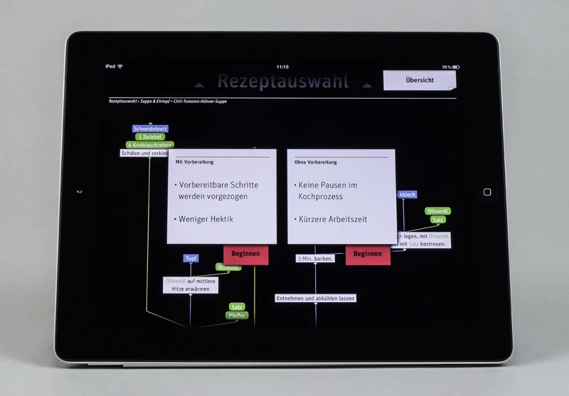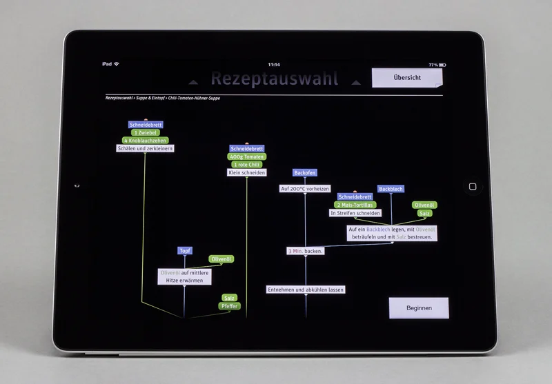 Kochbücher gibt es für jede nur denkbare kulinarische Richtung. Star- und Fernsehköche bringen stetig ihre besten Rezeptkompositionen auf den Markt. Doch trotz dieser Vielfalt ist die Darstellungsform der Rezepte immer identisch. Ein Titel, ein Bild, eine Zutatenliste und ein Anweisungstext – mal kurz, mal lang. Kochen nach Anleitung funktioniert jedoch auch anders!