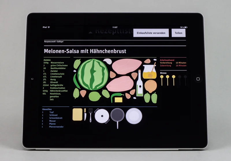 Das Konzept »Ein Kochbuch« ist parallel, mit 37 Rezepten, als Buch und iPad App erschienen.