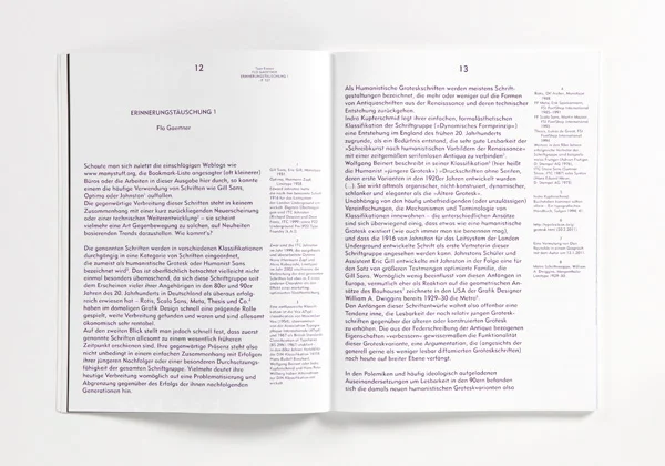 Übrigens: Slanted #13 und #14 bilden eine Doppelnummer zum umfangreichen Feld der Groteskschriften. Ausgabe 14 (erscheint im Juni) wird neuere Schriftentwürfe in der Tradition der amerikanischen, Neo- oder geometrischen Grotesk beleuchten.