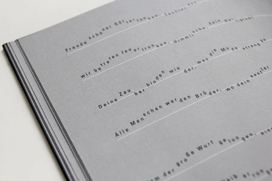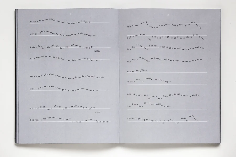 Ein Buch mit originellem Inhalt zu produzieren und es dennoch zu vermeiden von Kommunikationsdesignern zu Autoren zu mutieren – vermutlich stellten wir uns die schwierigste Aufgabe im Rahmen unseres Buchprojektes selbst. Schlussendlich fanden wir unsere Erfüllung in diesem typografischen Experiment zur Visualisierung von Melodien anhand von Liedtexten.