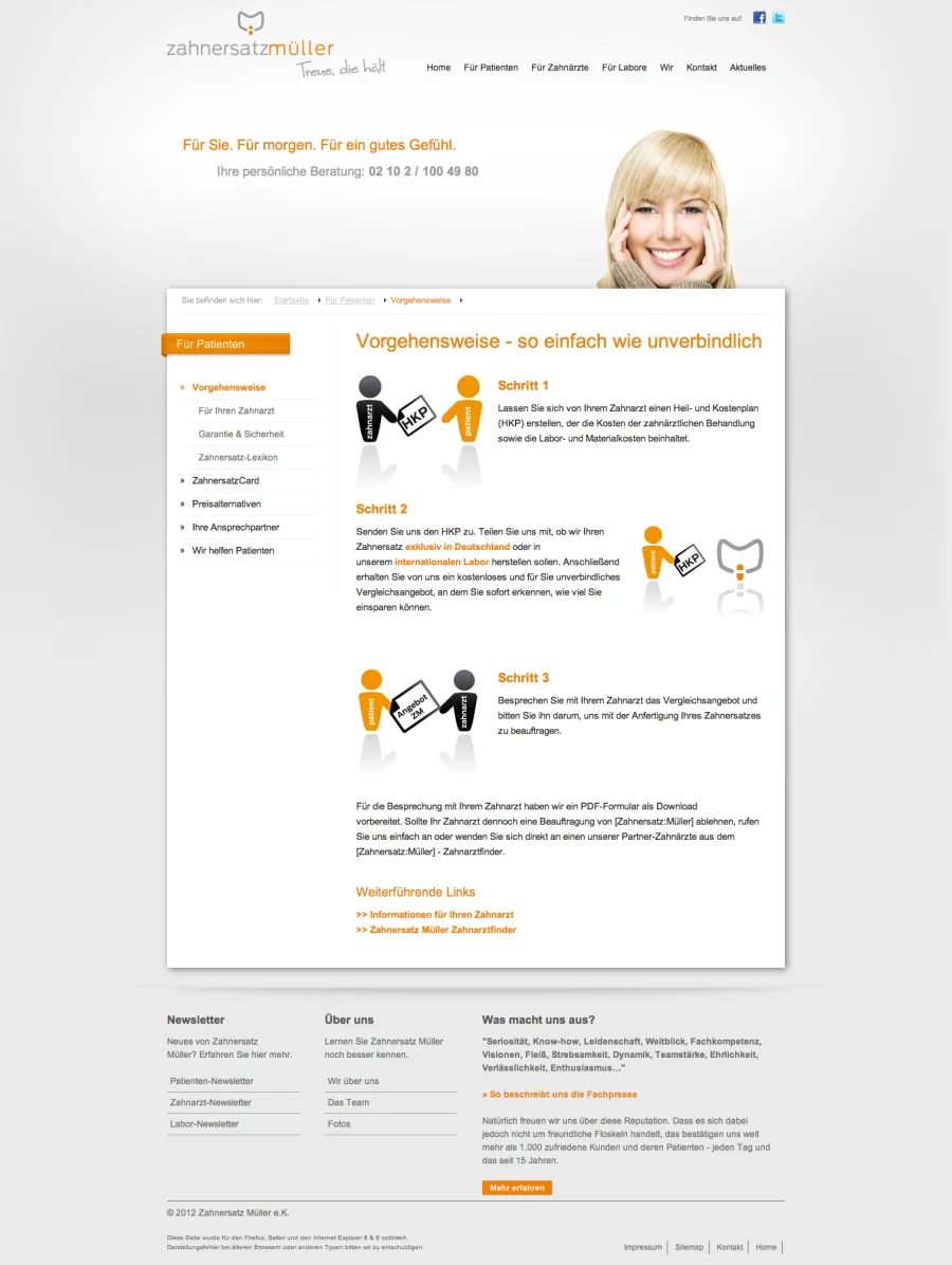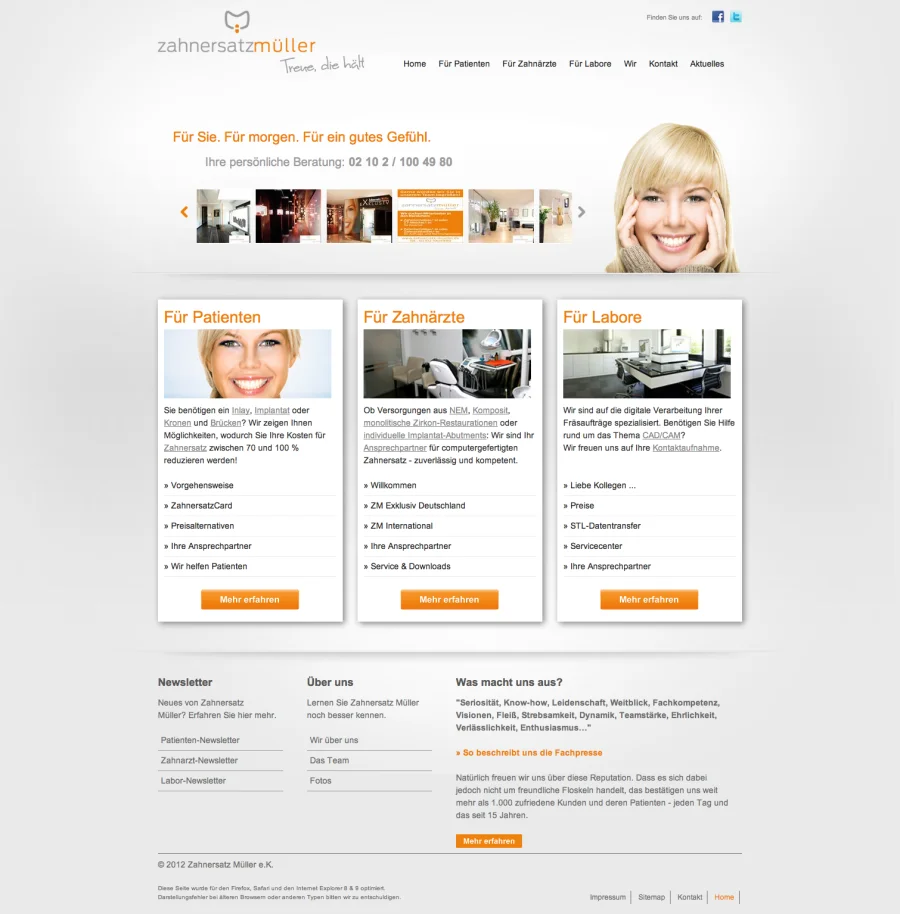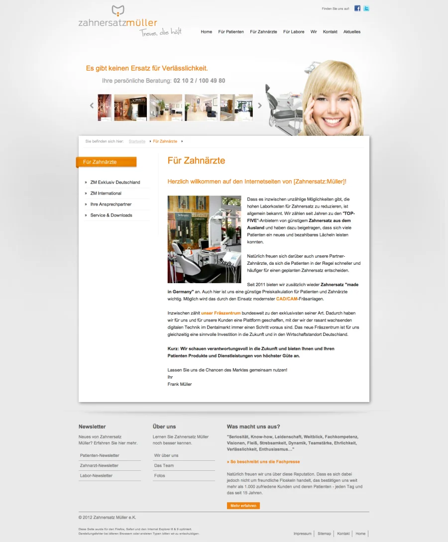 Da wir auch die vorherige Website von Zahnersatz Müller umgesetzt haben, konnte das neue Projekte kurzfristig in enger Zusammenarbeit mit der Geschäftsleitung umgesetzt werden.