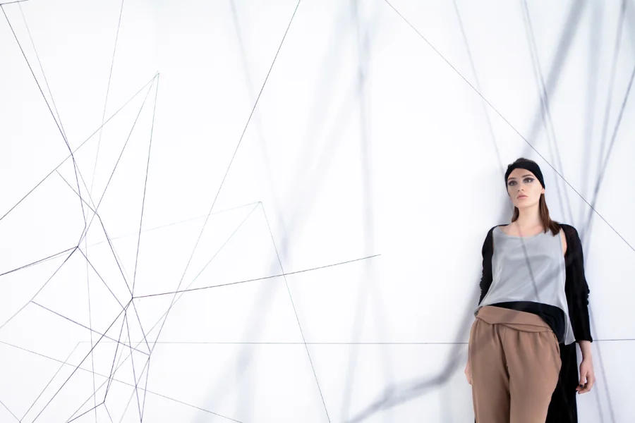 Der Faden als Ursprung der Kleidung, als Gedankenfaden, in dessen Netz man sich verlieren kann, man aber auch zurückfindet. Ariadne.
