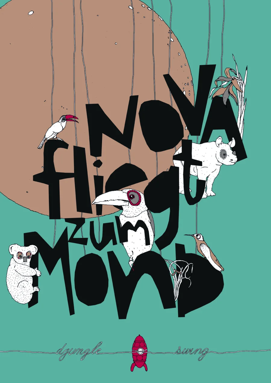 Plakat für die Berliner Band Nova fliegt zum Mond zum Release des neuen Albums Djungle Swing
