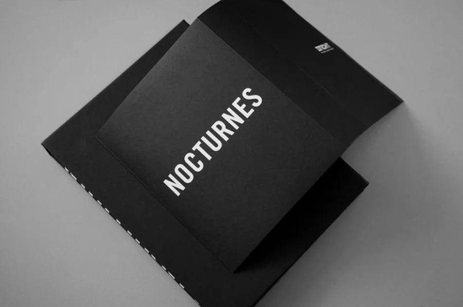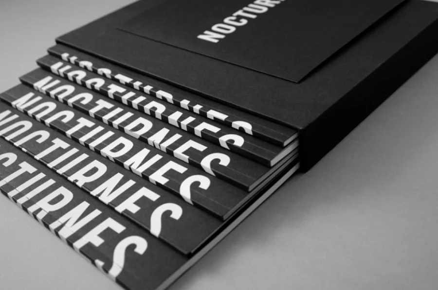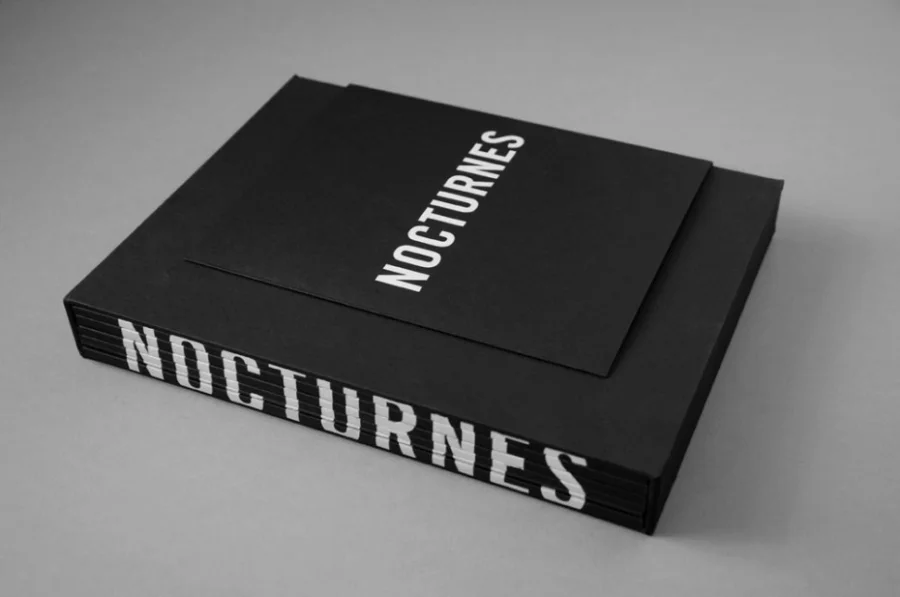 Nocturnes is a unique box set of 6 books by the new photography group ‘AM projects’ and published by dienacht publishing. This idiomatic object is published with varying papers – depending on the artist – one even has an enormous fold-out poster. All come originally fused together spinally and will be presented as a box set. It is a landmark – in terms of design and printing (as well as in terms of photographic content) – in photo book publishing.