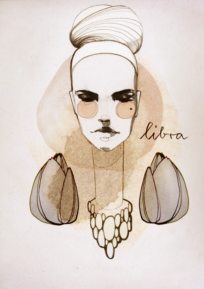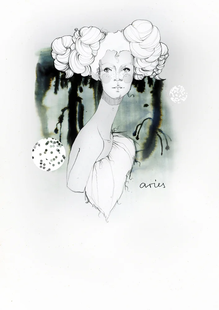 Die Abbildungen von zarten, weiblichen Frauentorsen zeigen auf subtile Art und Weise die 12 Sternzeichen. Dabei verschmelzen die Charakteristika der Sternzeichen mit den verschiedenen weiblichen Attributen und bilden eine figürlich und farblich harmonierende Serie.