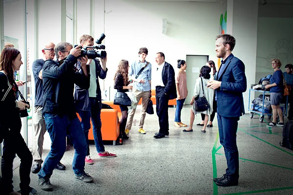 Erwan Bouroullec kam ohne seinen Bruder an die KISD um den Preis entgegenzunehmen. Aber seine Präsenz reichte für zwei. Sympatisch und offen nahm er sich viel Zeit für Interviews und Gespräche mit den Studierenden und den zahlreichen Gästen des Abends. Als er den »Kölner Klopfer« aus der Hand des Studenten Tobias Nickerl entgegen nahm, wirkte er unter dem lang anhaltenden Applaus des Publikums fast schüchtern. Dass er sich aber an dem Abend an der KISD sichtlich wohl gefühlt haben muss, merkte man jedoch deutlich, als er in aller Ruhe seine Bücher signierte und jedes einzelne durch eine Zeichnung in ein Unikat verwandelte. Merci, Monsieur Bouroullec!
