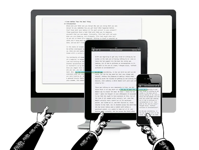 So weit ich sehe, sind unsere Seite http://informationarchitects.net und unsere App iA Writer die einzigen Produkte, wo typografische Responsiveness in vollem Umfang zur Anwendung gekommen ist. Wenn man keinen geräteübergreifenden Vergleich macht, nimmt man Responsiveness ja gar nicht wahr.