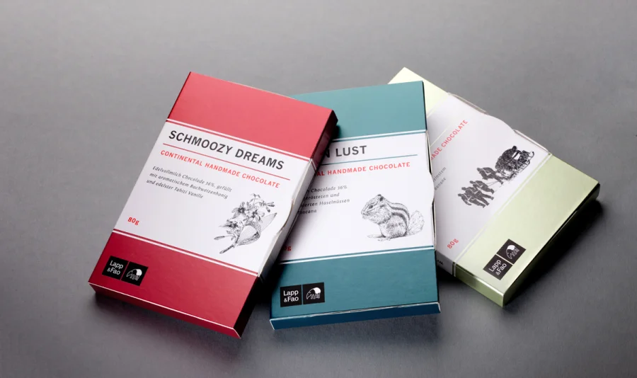 Dieser Prozess wird durch den neuen Packaging Auftritt der Schokoladen plakativ inszeniert. Jede Tafel ist im Stile eines Tagebuches gestaltet und beinhaltet die Essenz aus Lapp & Fao’s Reisen – jede Tafel ein köstliches Andenken.