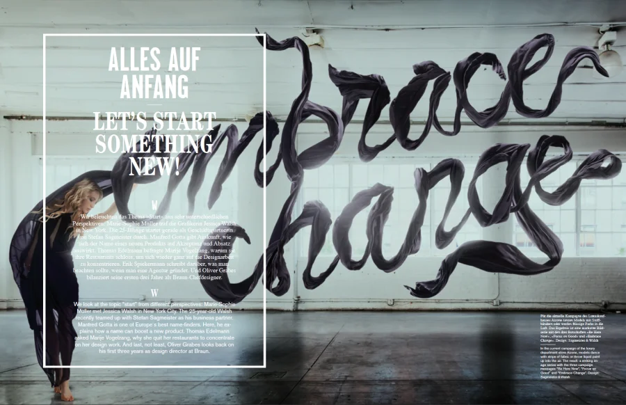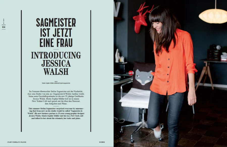 Sei es drum, was das Magazin ausmacht sind Reportagen und Interviews wie der über Jessica Walsh, der neuen Geschäftspartnerin von Stefan Sagmeister oder der von Erik Spiekermann, der erklärt warum es sich lohnt immer wieder neu anzufangen.