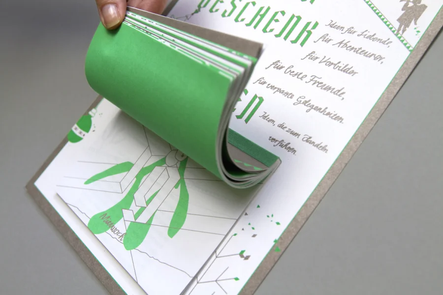 Hinter der Idee und der Umsetzung des diesjährigen Kalenders stehen das Designbüro für Publikationen und Identitäten ItYt und das Konglomerat für Erlebnisse, Sprache und Gamification Die Spielmacher. Beide Parteien verstehen sich als kreative Ideengeber und Liebhaber schöner Geschenke.