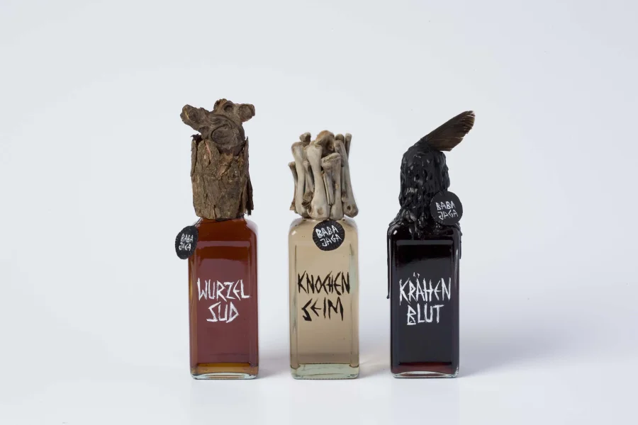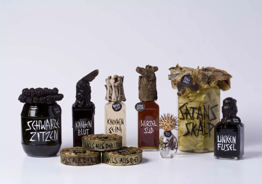Baba Jaga ist ein Lifestyle- Produkt der besonderen Art. Sie verkörpert in ihrem Erscheinungsbild nicht den konventionellen Luxus, sondern ist an jene gerichtet, die dem Alltag entfliehen möchten, um in die Welt der Hexen und Magier einzutauchen. Jedes Produkt ist individuell gefertigt und mit authentischen Details versiegelt. Die Inhaltsstoffe beinhalten Substanzen, die gewisse Fähigkeiten und Bewusstseinszustände verleihen. In dem dazugehörigen Buch wird die Anwendung der einzelnen Produkte ausführlich beschrieben und auf deren Wirkung und Anwendung hingewiesen.