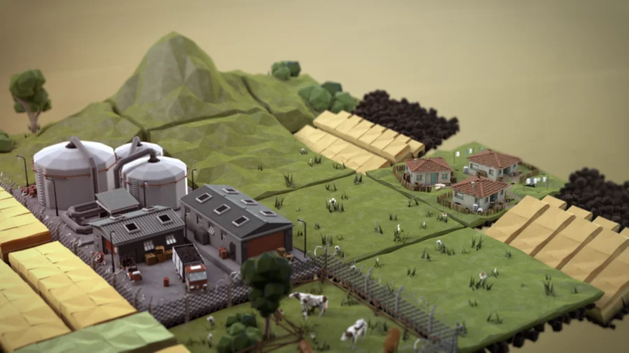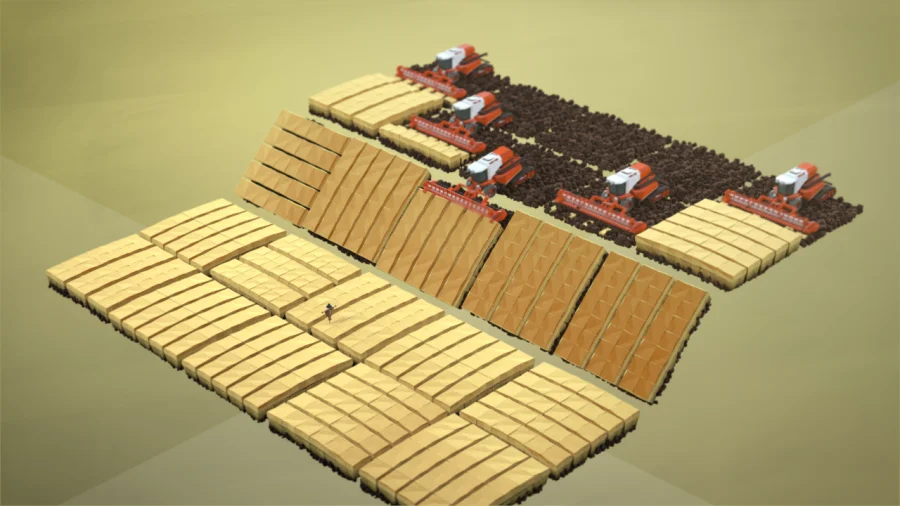 Was sich auf den ersten Blick etwas trocken anhören mag, ist eigentlich sehr spannend: Mähdrescher, Vogelscheuchen, Hero Regenwürmer, Schweine und Kühe, Sandstürme, böse Supermarktpumpen (die, die am Ende des Regals stehen…), eine lowpoly-Version (die nicht mehr wirklich lowpoly ist) des Berliner Alexanderplatzes, eine zweite Erde und viele weitere Dinge aus der Welt des Bodens finden Platz in diesem Film.