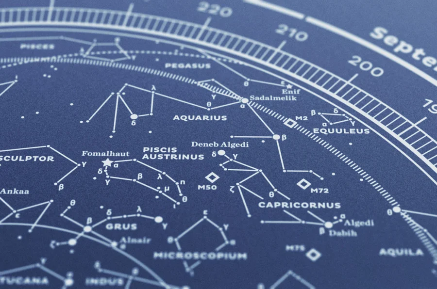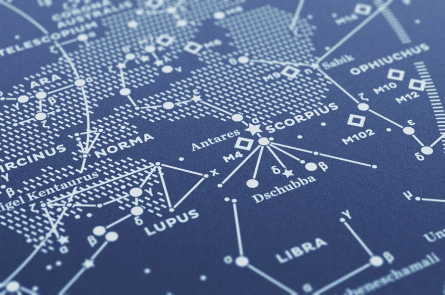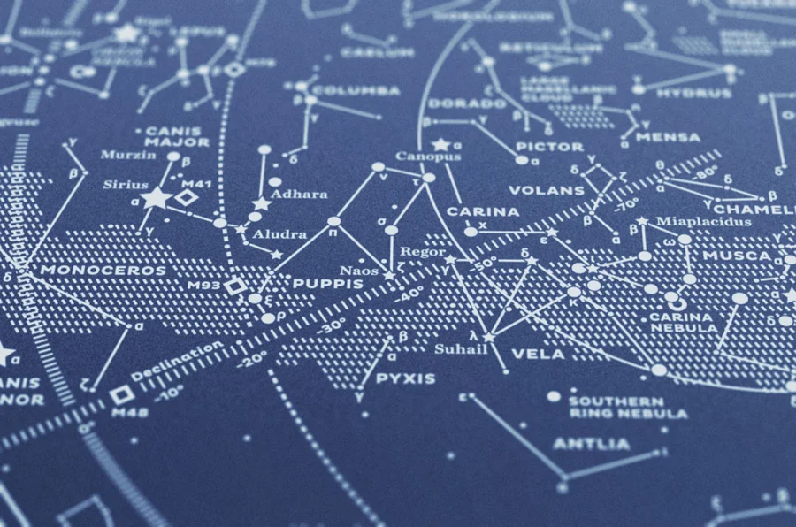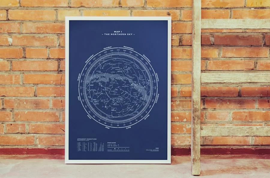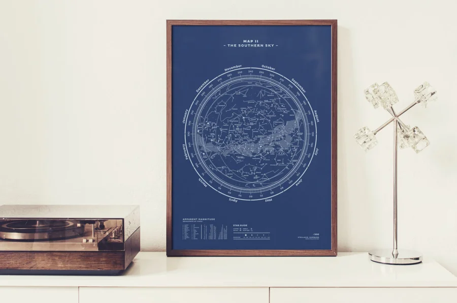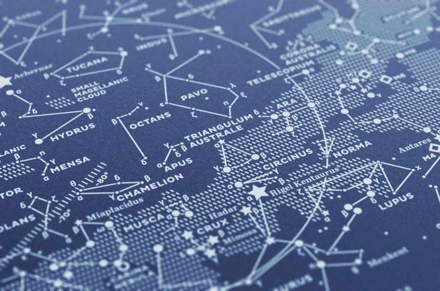 “Map No. I – The Northern Sky” und “Map No. II – The Southern Sky” ist eine detaillierte Darstellung unserer Sternbilder, wie sie von der nördlichen und südlichen Hemisphäre aus zu beobachten sind.