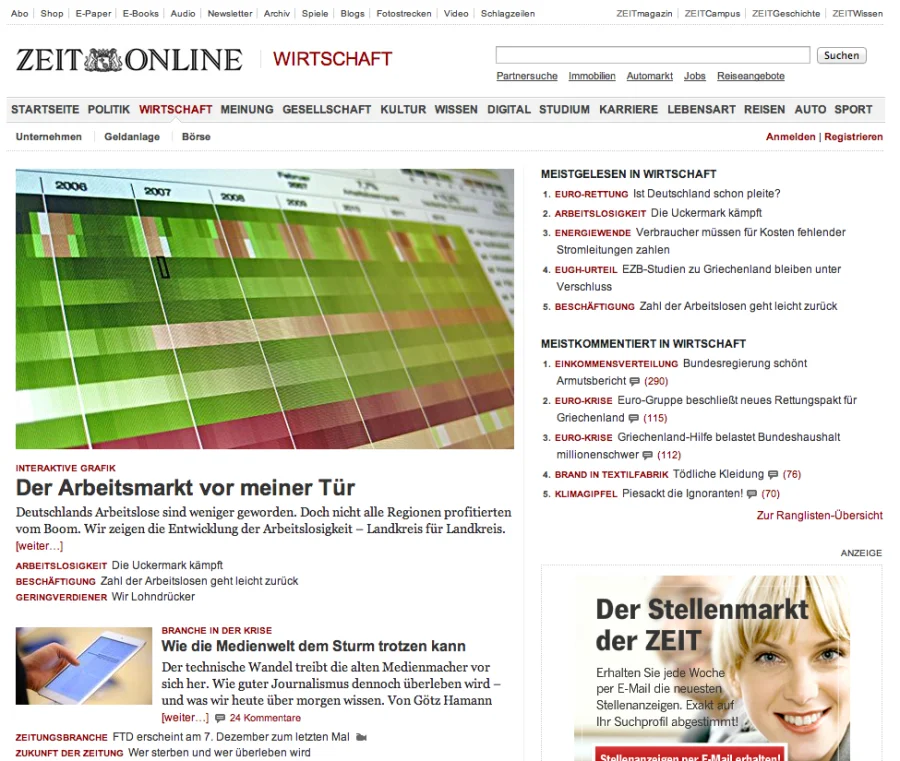 Spezielle Webfonts (und entsprechende Services zum Einbinden) bietet heute fast jeder Font-Distributeur an. Warum also beschränkt sich der Einsatz vornehmlich immer noch auf »kleinere« Websites? Gerade Nachrichtenportale – die sich offline auch nicht nur auf Times beschränken – können durch Webfonts im Mengentext das Markenbild stärken und sich von der Konkurrenz abheben. »Im Meer der Agenturmeldungen, die sich auf fast allen Portalen finden, helfen Webfonts Profil und Individualität zu zeigen.« (Achim Schaffrinna).