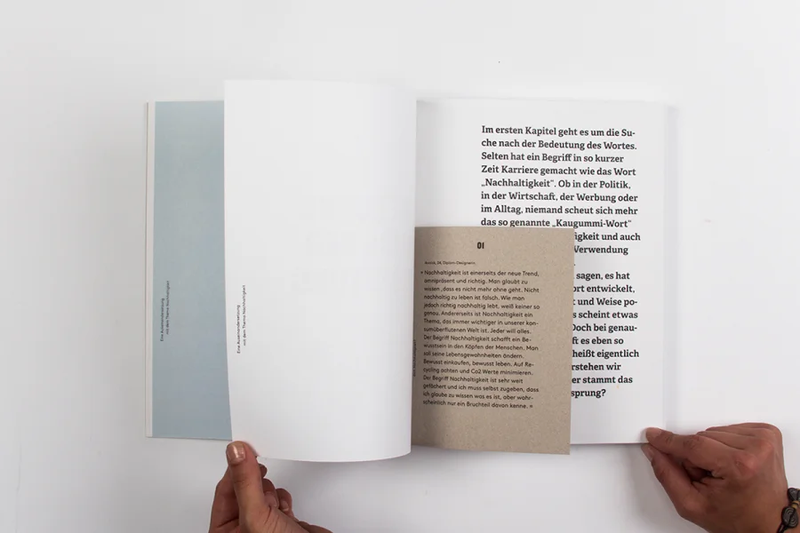 Entstanden sind ein Buch und ein Interview-Magazin. Das Buch beinhaltet eine Auseinandersetzung mit dem Thema Nachhaltigkeit, vom Urspruch des Gedankens über heutige Theorien bis hin zu Fakten über den Zustand unserer Erde.