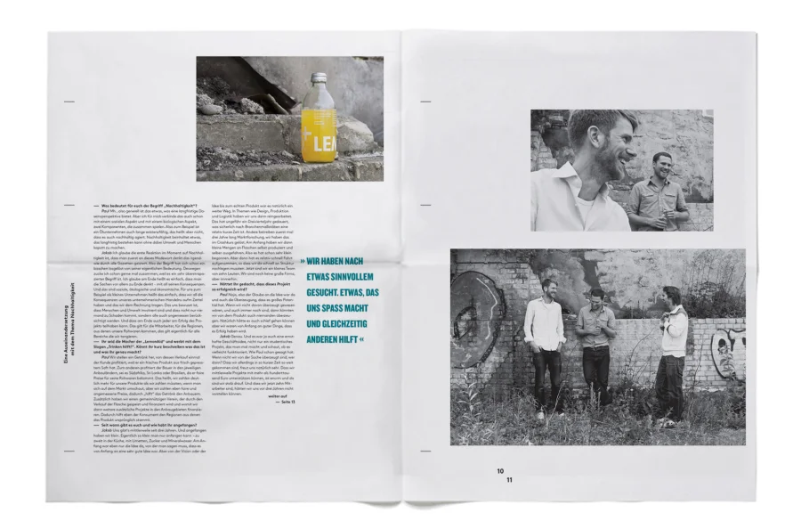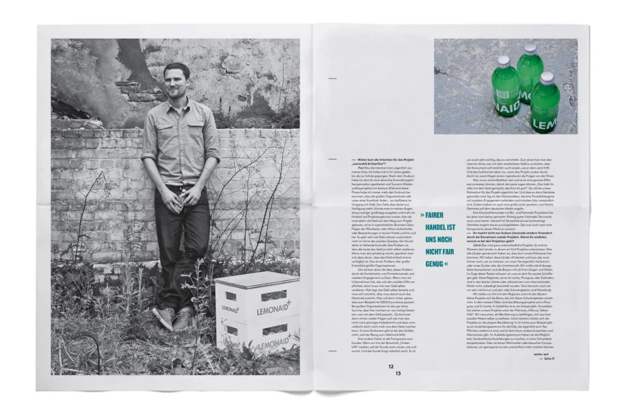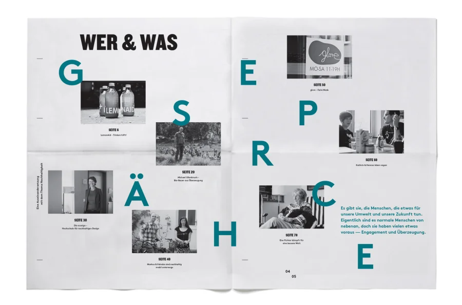 Das Interview-Magazin portraitiert Menschen aus verschiedensten Bereichen. Ob durch soziales Engegement und Entwicklungshilfe, ökologische Landwirtschaft oder Unterstützung alternativer Energien und Mobilität, alle haben eins gemeinsam: Sie leben wirklich nachhaltig.