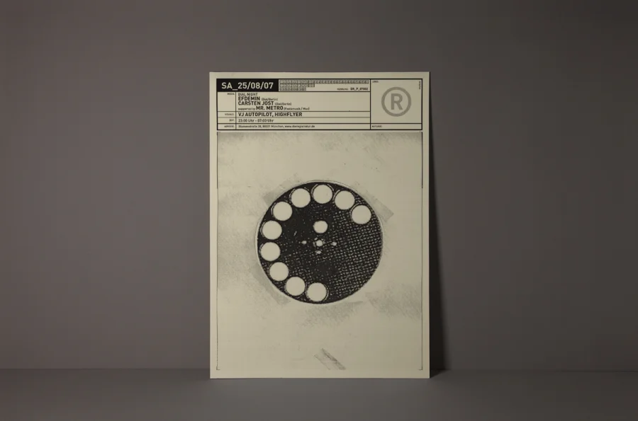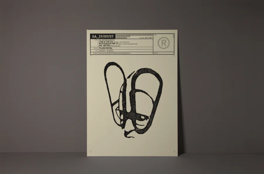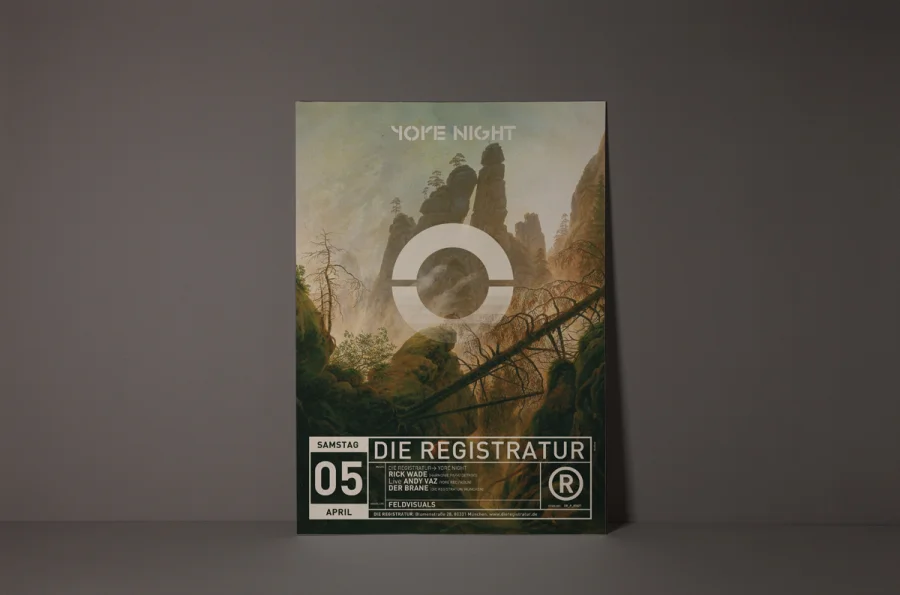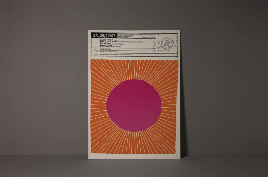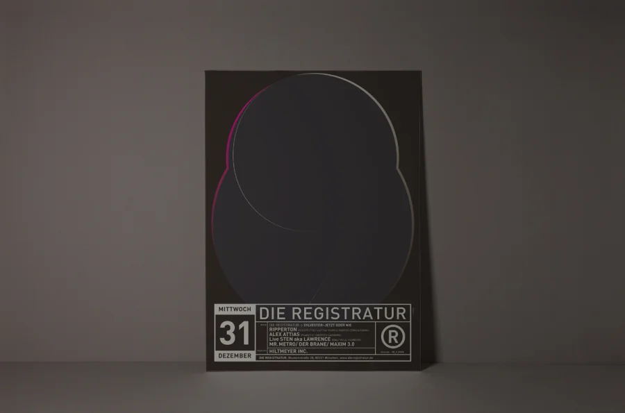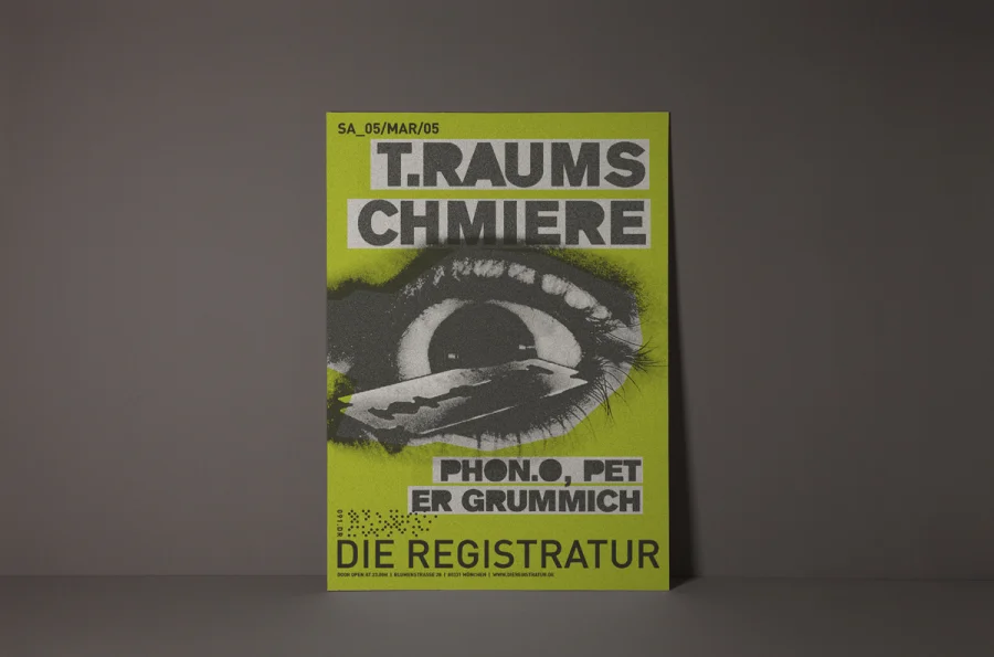 Die Plakate hatten zwei zunächst widersprüchliche Aufgaben zu erfüllen. Einerseits die individuelle Auseinandersetzung mit dem angekündigten Act, so dass die charakteristischen Merkmale der Künstler durch Schlüsselbilder visualisiert werden konnten. Anderseits mussten die Plakate eindeutige Wiedererkennung für die Registratur schaffen. Designliga löste diesen Widerspruch, indem der Begriff „Registratur“ wörtlich genommen wurde. Gestaltungselemente, die an ein behördliches Formularwesen erinnern, wurden als Stilelement über das eigentliche Motiv des Plakates gelegt. Die visuelle Kommunikation des Künstlers darunter erhielt maximalen Freiraum, indem die volle Plakatfläche individuell gestaltet werden konnte. Künstler und Registratur verschmolzen so zu einer funktionalen Einheit. Die Registratur wurde zum Veranstaltungsarchivar. Die Registraturplakate ließen eine damals zum Erliegen gekommene Plakatkultur neu aufleben und prägten ab 2003 bis zur Schließung des Clubs im Jahre 2009 das Münchener Stadtbild.