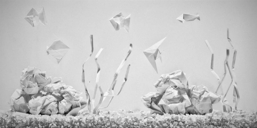 Das gesammte Projekt besteht aus Papier. Die Originalmasse des Aquariums sind 60x30cm.