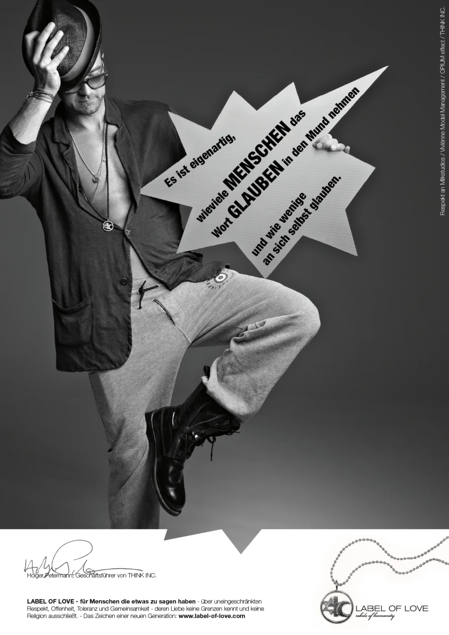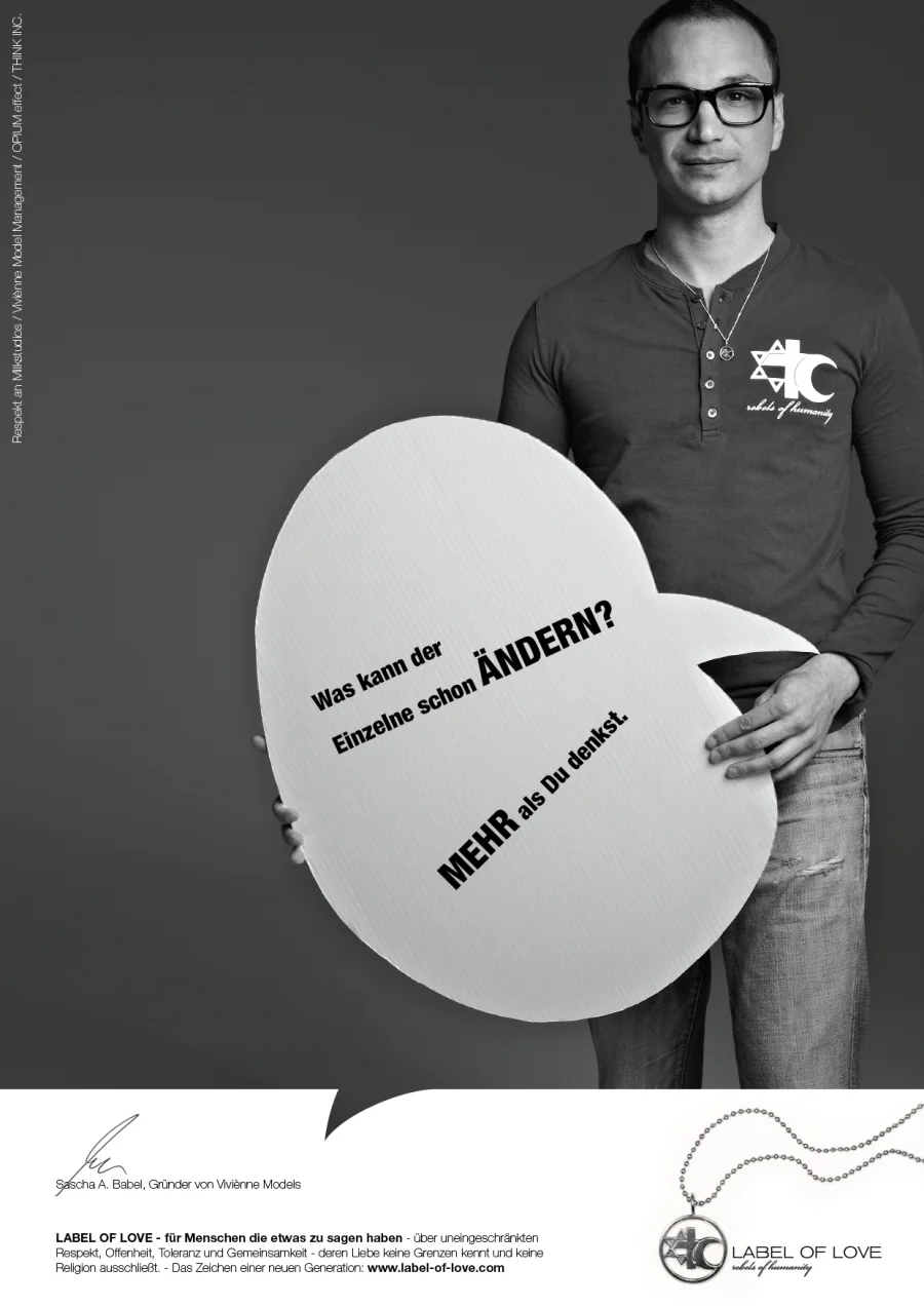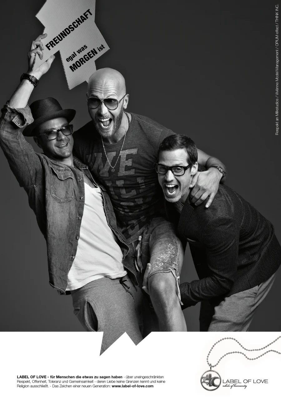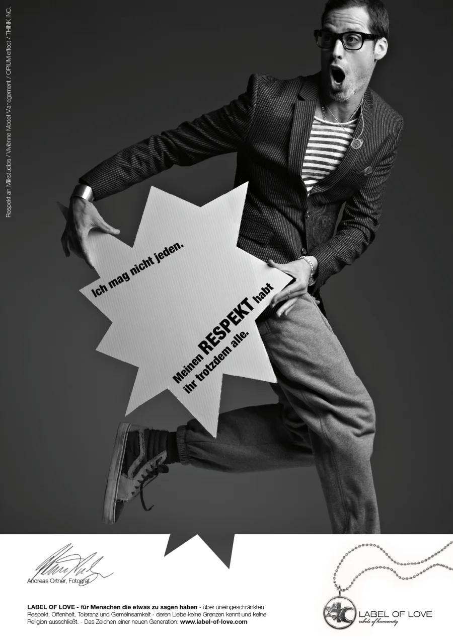 Die Kampagne der Lifestylemarke LABEL OF LOVE trifft den Nerv der Zeit. Die Anzeigenmotive und Filmclips versinnbildlichen genau das, wofür LABEL OF LOVE steht: für ein respektvolles, lebendiges und zeitgemäßes Miteinander. Umgesetzt wurde die Kampagne, die in Print- und Onlineform sowie als Clip-Version kreiert worden ist, mit 14 Personen aus der Mode-, Schauspiel- und Werbebranche. Es sind Menschen, denen oft Oberflächlichkeit nachgesagt wird, da sie sich beruflich bedingt hauptsächlich mit schönen Dingen wie Mode, Beauty und Lifestyle umgeben. Aber sie haben wie alle etwas zu sagen. Die Copy-Zeilen auf den Bildern entstammen direkt von den Protagonisten selbst. Die Kampagnenaussage „Wir haben was zu sagen“ wird durch Sprechblasen aus Pappmaschee untermauert, mit denen die Protagonisten nonverbal ihre Gedanken zum aktuellen Zeitgeschehen demonstrieren. Ziel der Kampagne ist es, Menschen für das Thema Toleranz zu sensibilisieren und auf das Produkt aufmerksam zu machen.