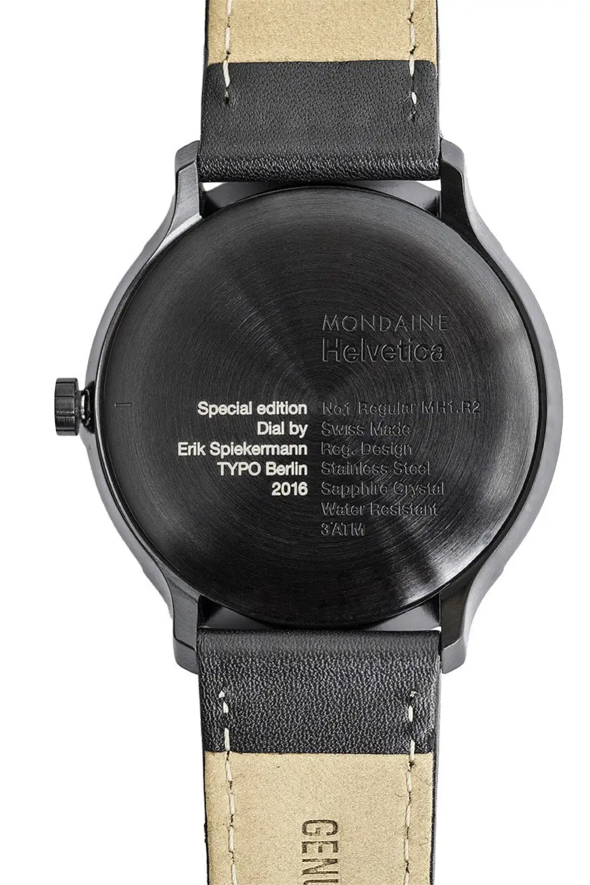 Die Mondaine-Brand-Managerin Brigit Bircher ergänzt: »Es war uns eine Freude und eine Ehre, dass Erik Spiekermann das Zifferblatt für diese Special Edition gestaltet hat. Für uns ist Helvetica eine Bereicherung mit einem unerschöpflichen Reservoir an Varianten und Möglichkeiten; und ihre unspektakuläre Erscheinung passt für uns perfekt zu den Kernwerten der Marke Mondaine: einfach, zeitlos, Schweiz.«