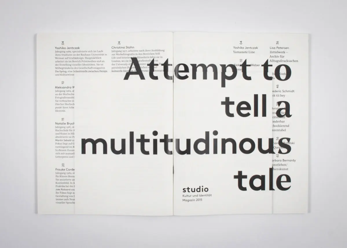 Mit Beiträgen von sowie gestaltet von: Barbara Bernardy, Natalie Brychcy, Frauke Cordes, Christina Eike, Yoshiko Jentczak, Oliver Krebeck, Lisa Petersen, Johanna Rafalski, Frederic Schmidt, Christina Stohn, Avani Tanya, Aleksandra Weber