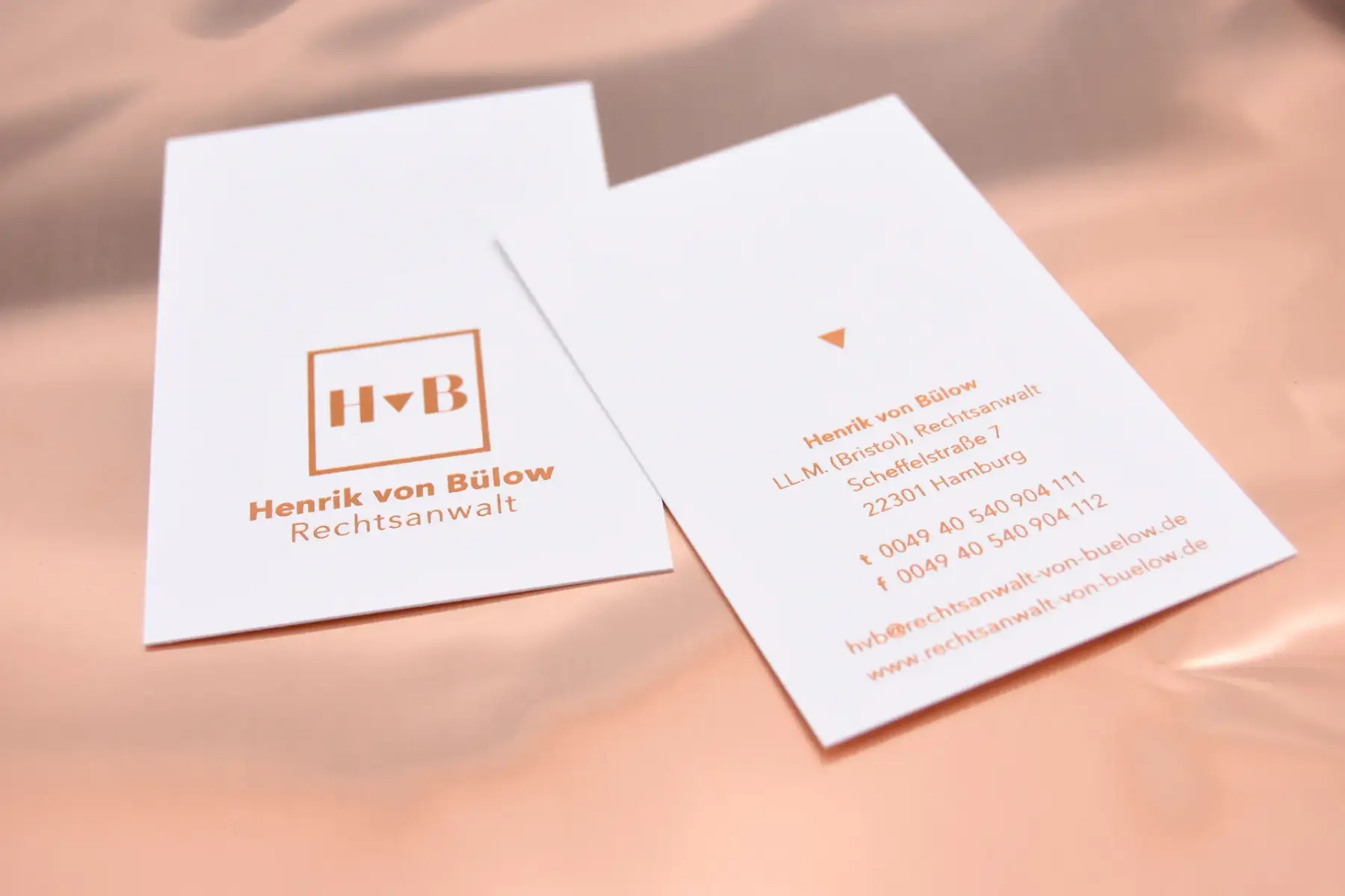 Für den Rechtsanwalt Henrik von Bülow aus Hamburg sollte im Rahmen seiner Kanzleigründung ein Corporate Design entwickelt werden. Ziel war es, ein kraftvolles, seriöses und elegantes Erscheinungsbild zu entwickeln, welches die Kompetenz und Vertrauenswürdigkeit der jungen Kanzlei widerspiegelt und dennoch einen modernen und zeitgemäßen Charakter hat.