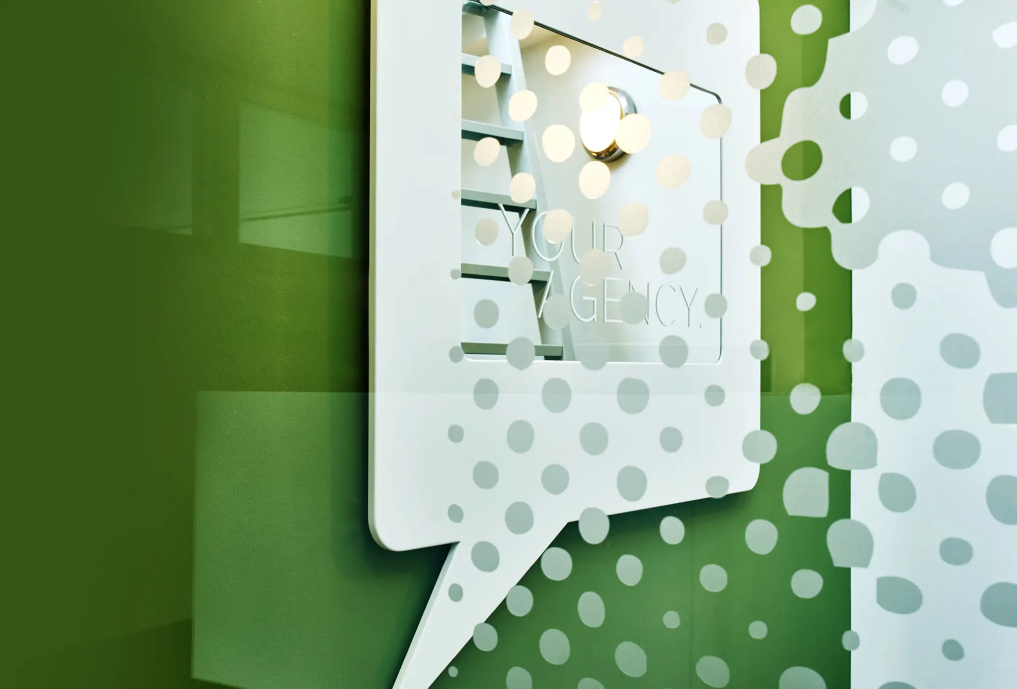 Die frischen Drucksachen schließen den Kreis zum neuen Erscheinungsbild im Internet und in den Agenturräumen. So findet man ab jetzt den Claim „Your Agency.“ auch auf Briefbögen, Grußkarten und Booklets – in acht leuchtenden Farben, die jeder Mitarbeiter spezifisch für sich einsetzen kann. Zudem wird eine klare Differenzierung durch die einprägsame Hieroglyphen-Schrift (Dual) und den auffallenden Farbschnitt, also an den Kartonkanten der Drucksachen, erreicht. Der Effekt ist subtil, aber dennoch auf keinem Schreibtisch zu übersehen.