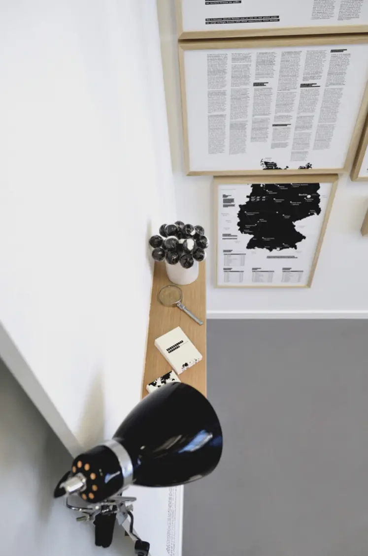 Jeder Rahmen umfasst ein Themengebiet aus dem hiesigen Bildungskanon. In Form einer »Salonhängung« ergibt sich eine Wissenswand.
