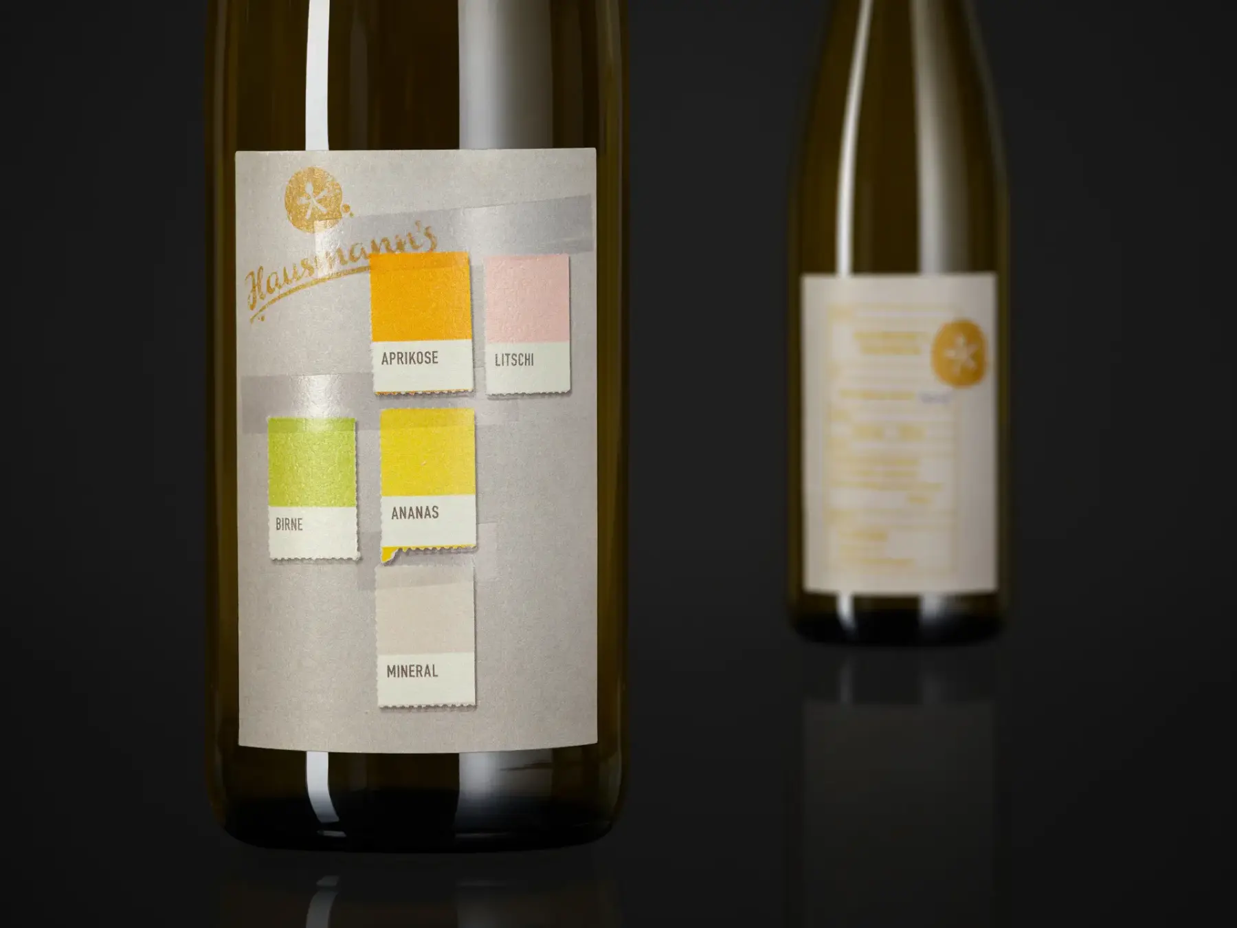 Die Aufgabenstellung: Gestaltung der neuen Hausmann’s Hausweine (rot(weiß). Diese sollen das Geschmacksversprechen des Weines auf schnelle Art visuell erlebbar machen. Und sie sollen zum Erscheinungsbild der Hausmann’s-Gastronomie passen, einer Neuinterpretation der »German Gemütlichkeit« – handgemacht, mit Ecken und Kanten. Die Lösung: Wir haben die in den Weinen enthaltenen Aromen in Pantonetöne übersetzt. Verbunden mit dem handgemachten Charme der Hausmann’s Welt, entstanden moderne Etiketten, die sich auf überraschende Art und Weise selbst erklären. Produktion: Vierfarb gedruckt auf Naturpapier, veredelt mit Deckweiß, partiellem UV-Lack und Tiefprägung.