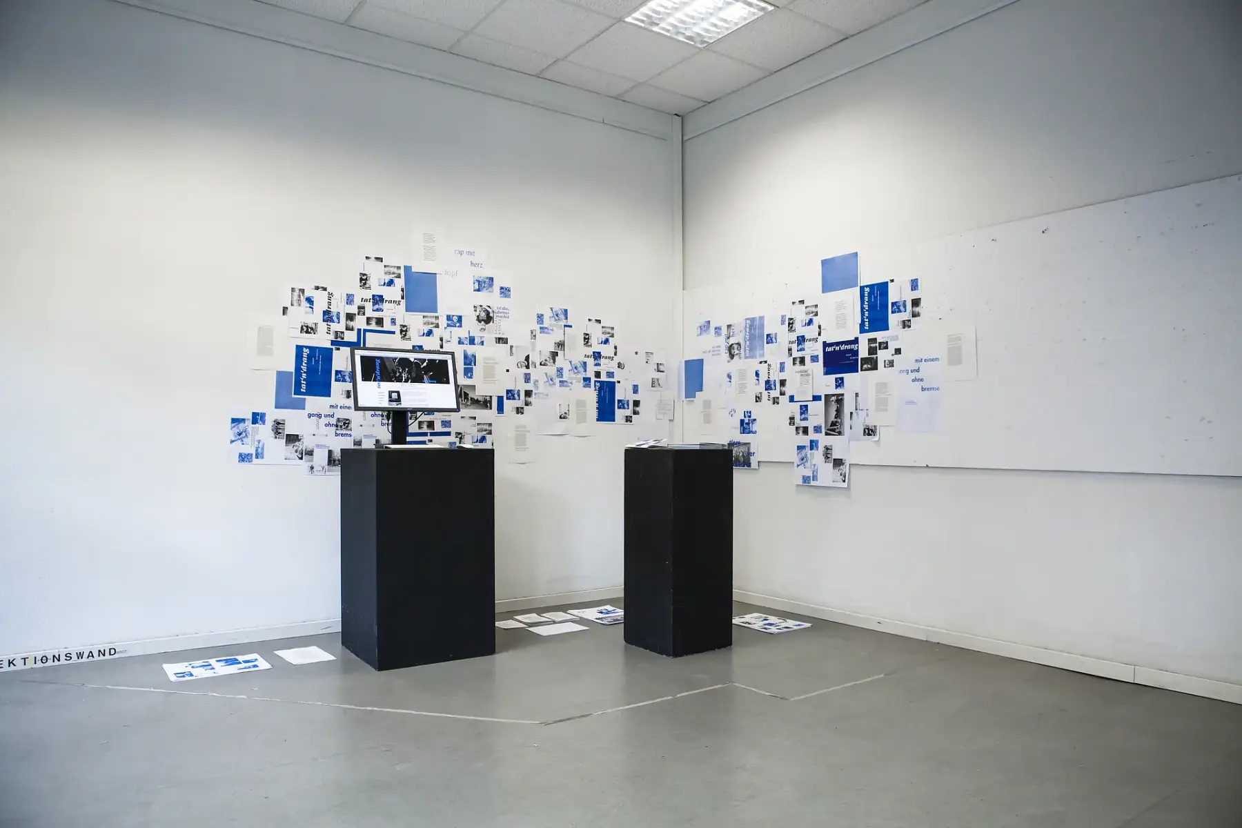 Tat‘n‘drang baut das Grundgerüst für ein DIY-Magazin, welches auf einer unregelmäßig erscheinenden Printveröffentlichung und den dagegen regelmäßig erscheinenden Beitragen auf der digitalen Plattform basiert – stets szeneübergreifend und mit lokalem Bezug zum Ruhrgebiet. Diese Basis kann und soll von der jeweils aktuellen Redaktion genutzt und weiterentwickelt werden. Die ausgewählten Themenbereiche Musik, Kunst, Kultur und Sport variieren je nach Besetzung und aktuellem Bezug in ihrer Ausführlichkeit. Im Fokus bleibt dabei die gesellschaftliche Relevanz. Nicht geht es darum, ein Social Media Konzept zu gestalten und somit jedem den freien Zugang zur Selbstbeteiligung zu ermöglichen, sondern um eine strukturierte Übersicht der Möglichkeiten und um das Abbilden der Vielseitigkeit innerhalb der DIY-Kulturen. An dieser Stelle ist natürlich eine Limitierung der Selbstbeteiligung erforderlich. Wünschenswert ist es, ein Kollektiv von enthusiastischen Redakteuren verschiedener Bereiche zu generieren, welches zusammen über die Relevanz von Veröffentlichungen und Einreichungen diskutiert und entscheidet. Tat‘n‘drang nimmt sich heraus, eben genau bei dieser Thematik zu selektieren und sich auf subjektiv spannende und gesellschaftlich relevante Projekte zu beziehen. Für alles andere plädiert das Magazin auf »Don‘t Do-It-Yourself«! (vgl. Auerbach »Don‘t Do It Yourself«) Den Kern der analogen Veröffentlichung bilden die Ebenen Bild und Text. Um der jeweiligen Priorität mehr Ausdruck zu verleihen und dem Betrachter den Raum zu geben, sich bei Bedarf auf eine der Ebenen zu konzentrieren, werden diese durch unterschiedliche Formate getrennt. Interviews und Aussagen der vorgestellten Personen sind im Fokus und bekommen die höhere Priorität, somit das klassische DIN A5 Format. Dieses wird durch ein größeres Format für Fotos und Bilder unterstützt, sodass der Betrachter einen tieferen Einblick in die umgebenden Szenen und Räumlichkeiten der vorgestellten Personen bekommt. Das Selbermachen ist der Inbegriff von DIY und steht auch bei der Konzeption des analogen Magazins im Vordergrund, weshalb das Vervielfältigen und Binden des Magazins von mir selbst durchgeführt wird. Zu Beginn steht eine Kleinstauflage von 35 Exemplaren. Jedes weitere soll als Print On Demand erstellt werden,bis eine maximale Edition von zum Beispiel 100 Stück pro Ausgabe erreicht wäre. Das Medium zur besseren Vernetzung, regelmäßigen Beitragsveröffentlichung und zum kontinuierlichem Auftritt im Social-Media-Bereich bildet die blogähnliche Webseite. Diese verortet die verschiedenen Projekte im Großraum Ruhrgebiet mithilfe unterschiedlicher Rubriken. Neben der Präsentation der Hauptbeiträge im Print werden regelmäßig Kurzbeiträge, mit Berücksichtigung der gesellschaftlichen Relevanz jedes Einzelnen, veröffentlicht.